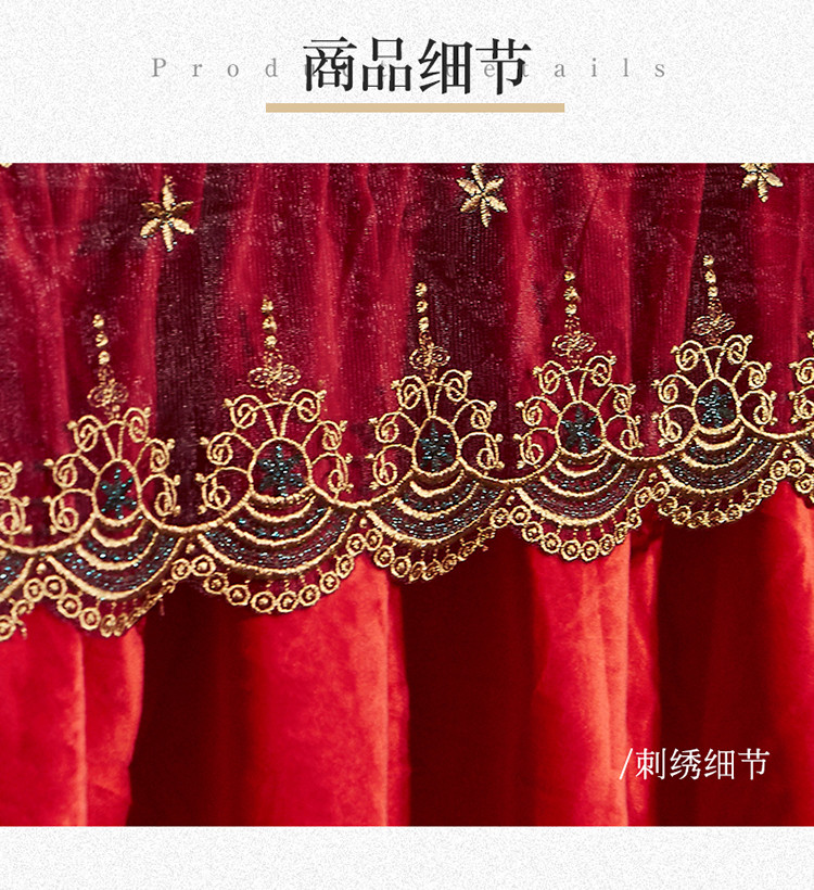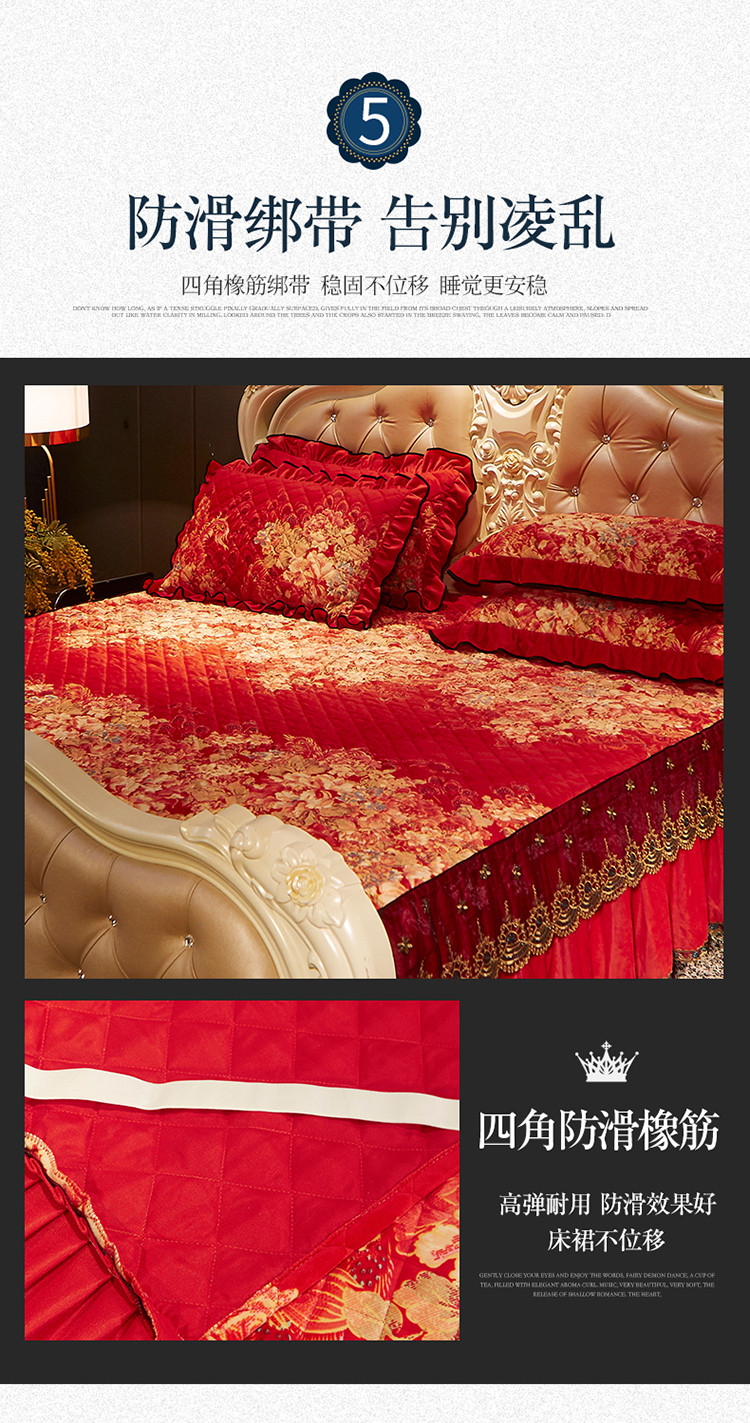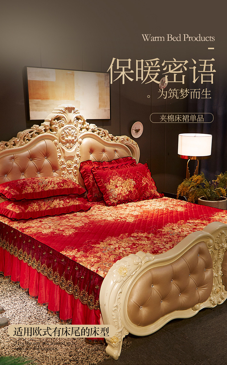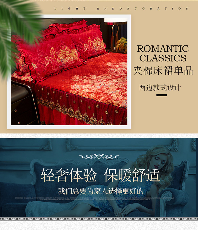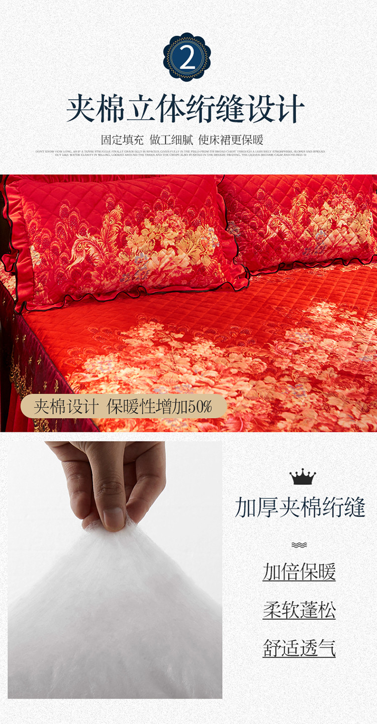 (总)宜凡家纺 2025新款婴儿绒压花全夹棉床裙四件套,韵雅-中国红,韵雅-黑天鹅