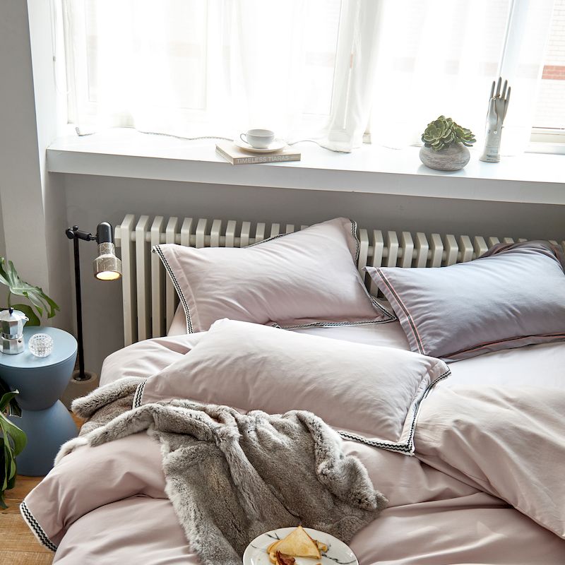 (总)涞澳家纺 2026新款全棉纯棉水洗棉纯色花边款四件套-珠若,珠若-米白,珠若-浅灰,珠若-浅绿,珠若-浅玉