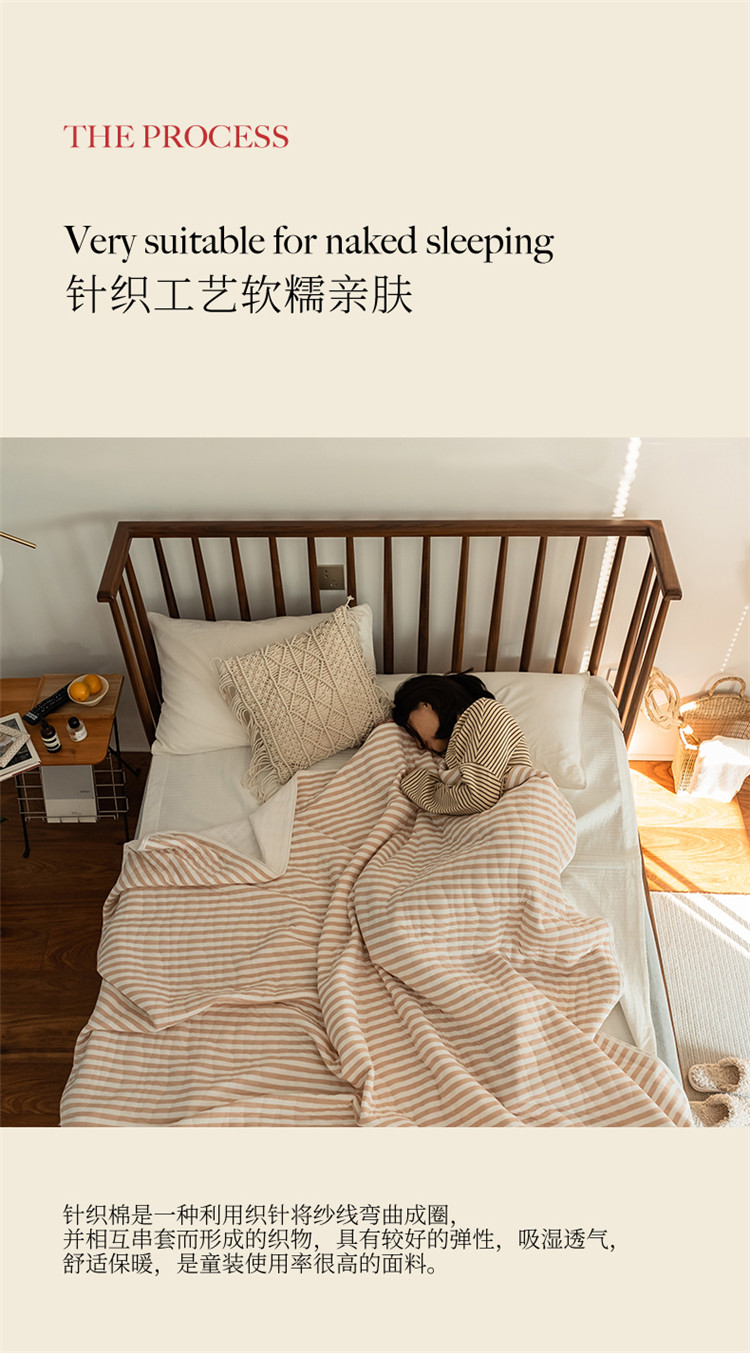 新款 全棉针织棉夏被 天竺棉夏凉被 浅咖条纹