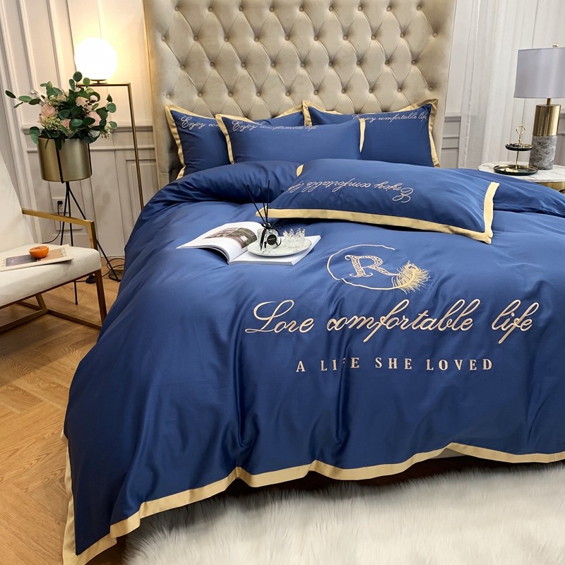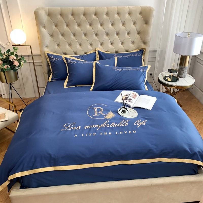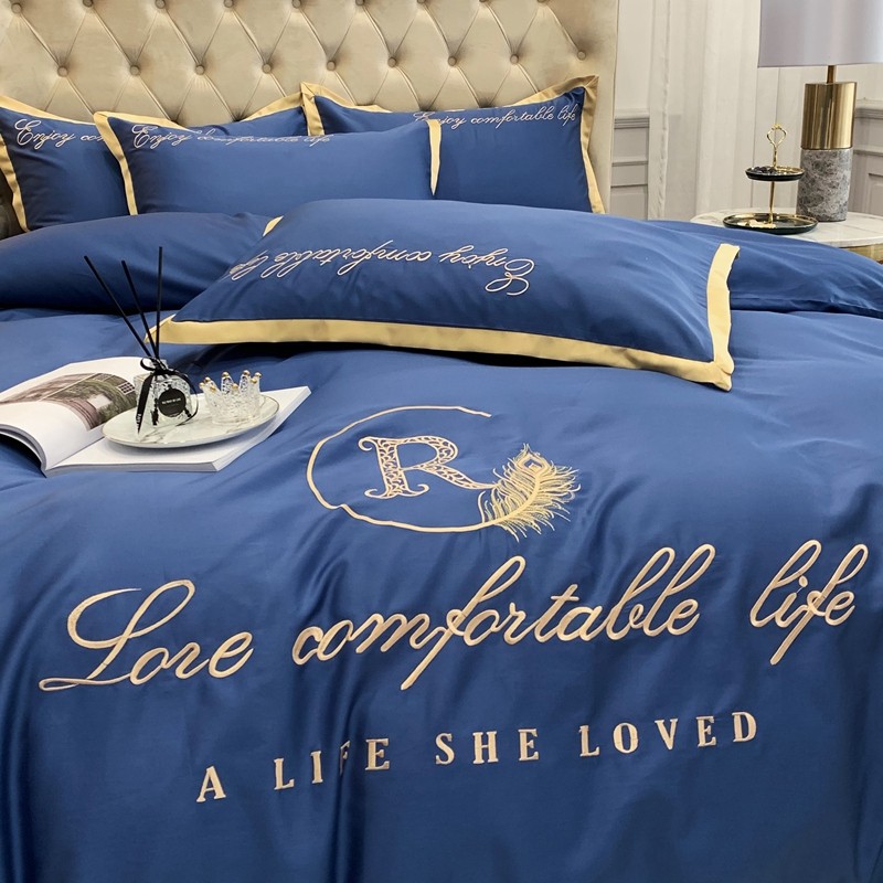 馨蕊家居 2021新款60长绒棉四件套简爱系列 简爱-黛蓝