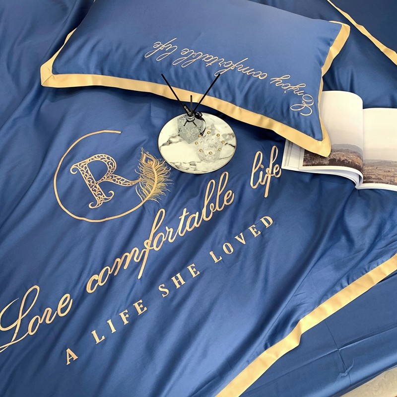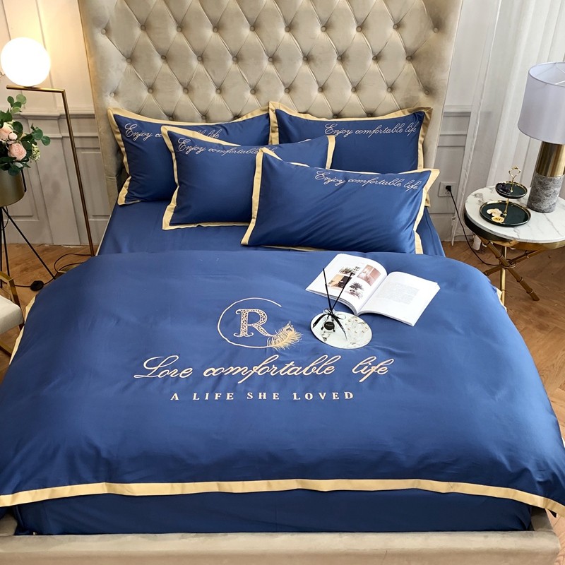 商品名称:馨蕊家居 2021新款60长绒棉四件套简爱系列 简爱-黛蓝