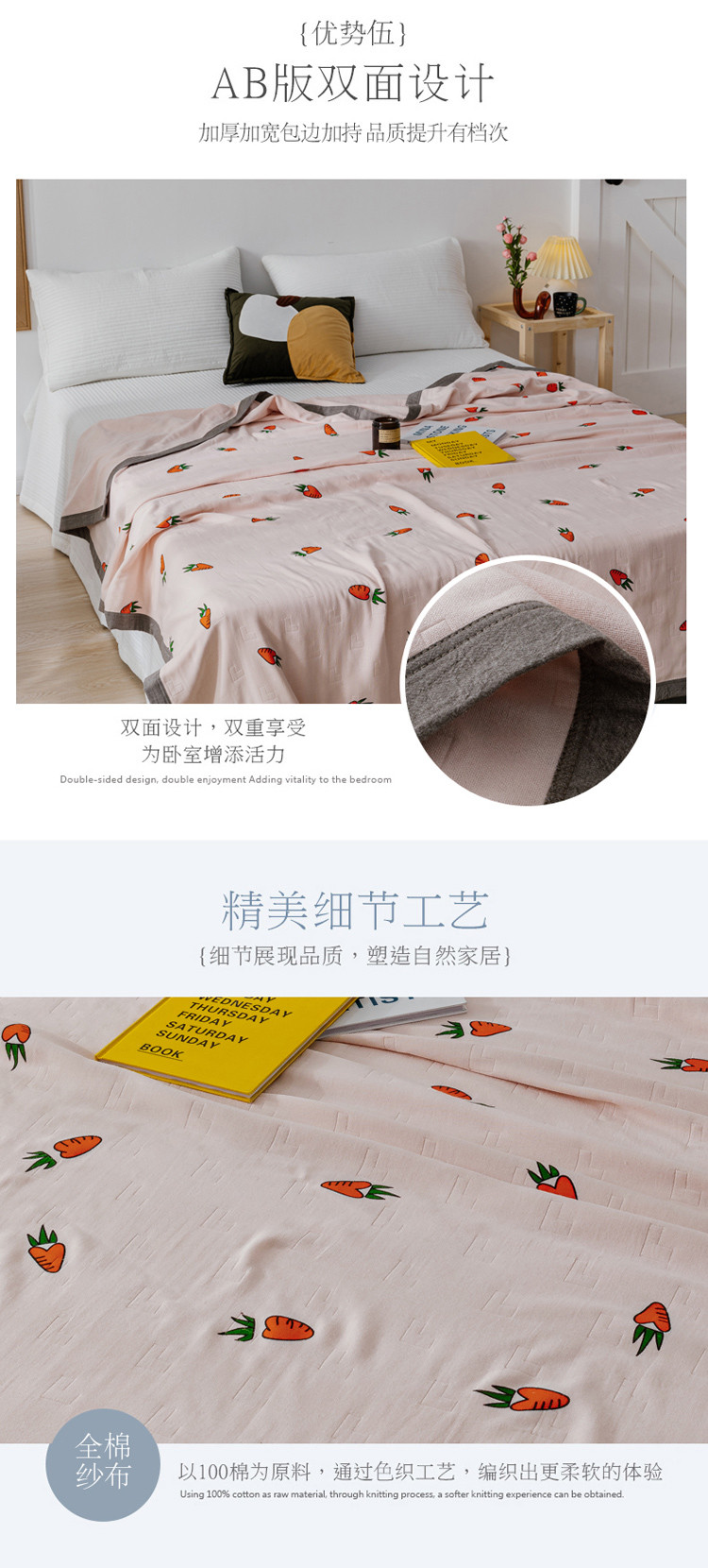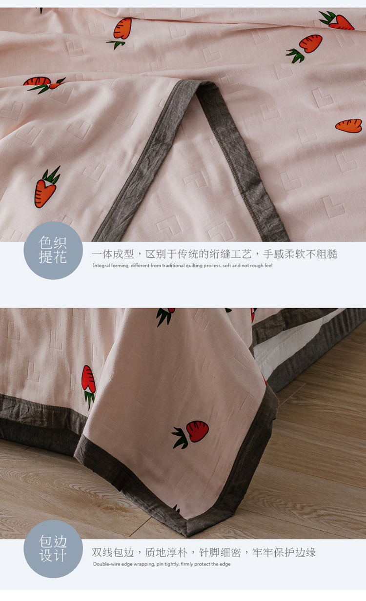 朴尔植物印染全棉纱布毛巾被可机洗床单双人休闲盖毯夏被胡萝卜粉