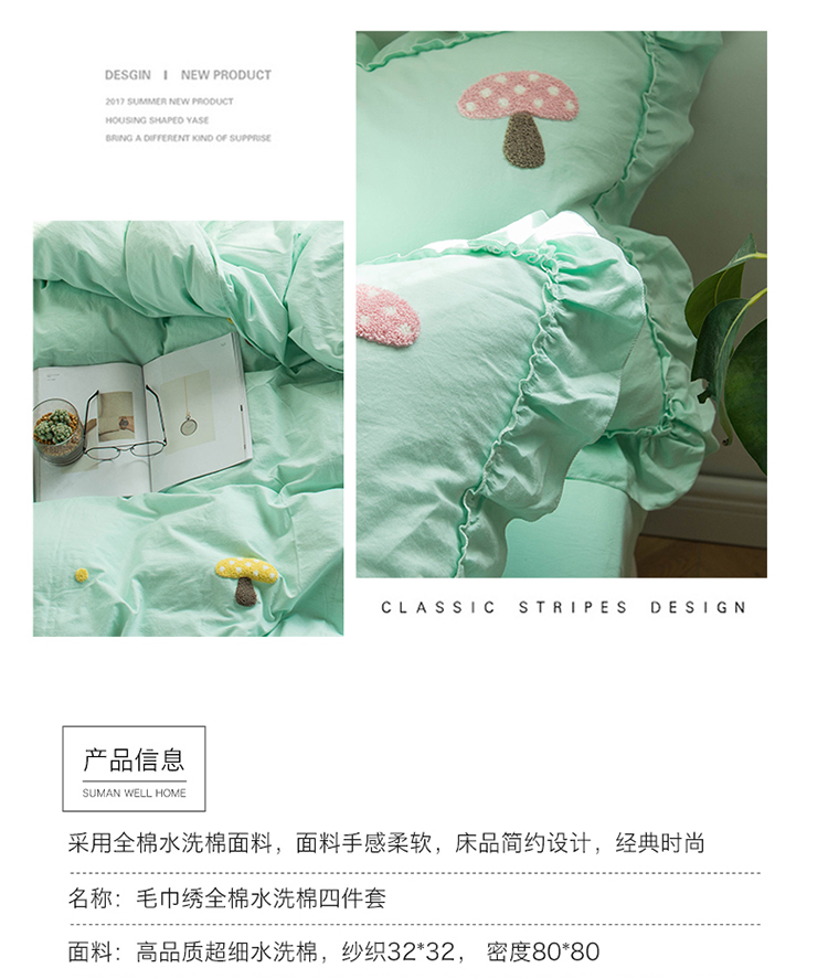 商品名称:淑女公社 2020新款毛巾绣四件套 小蘑菇-嫩绿