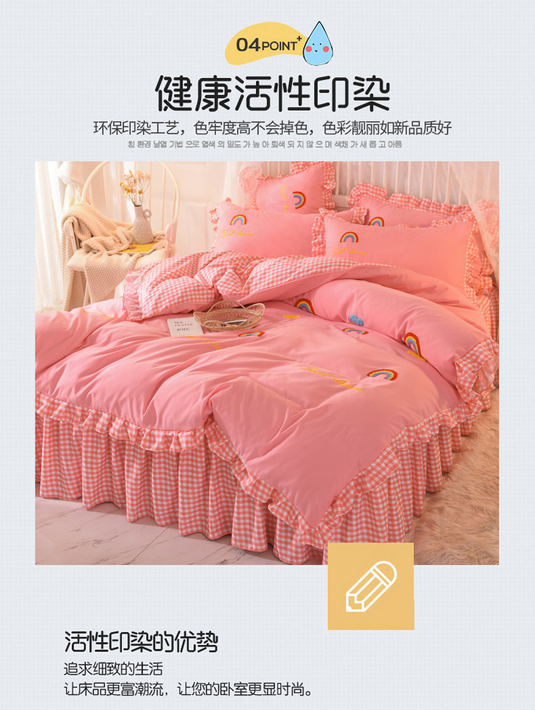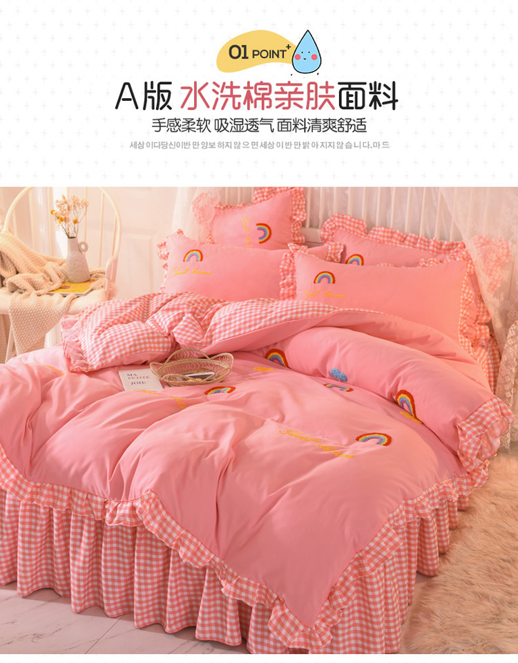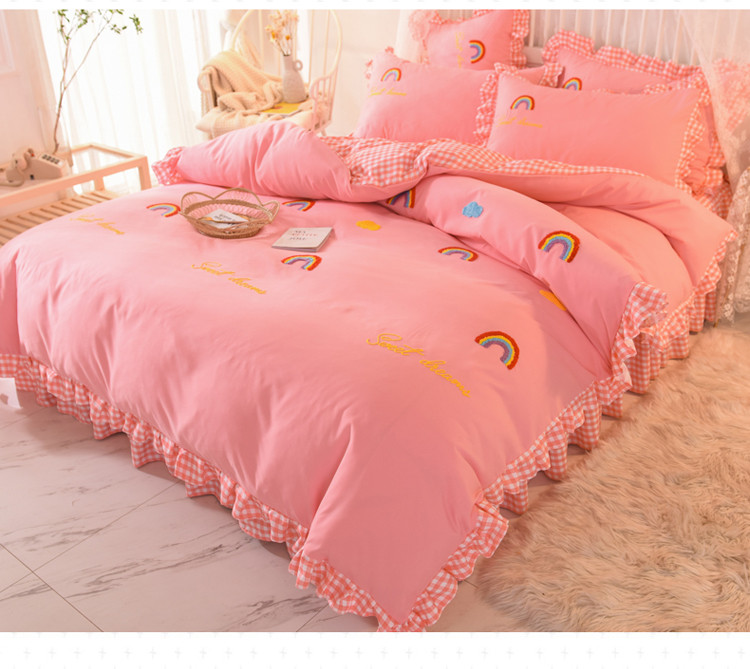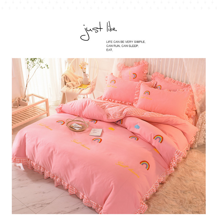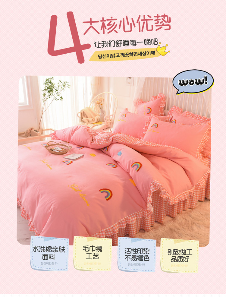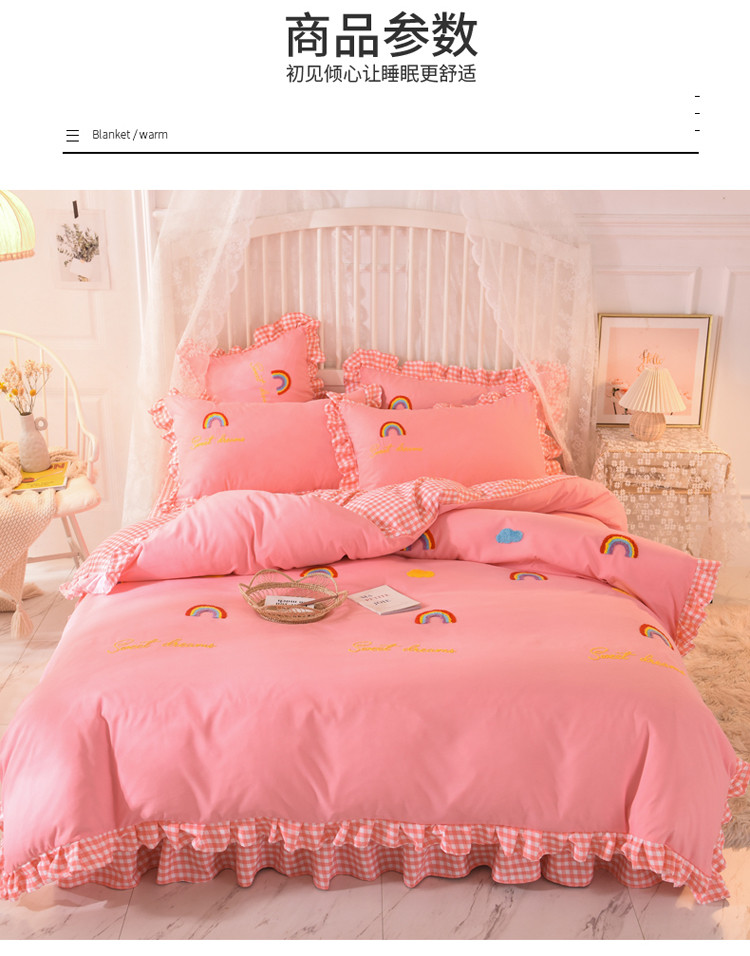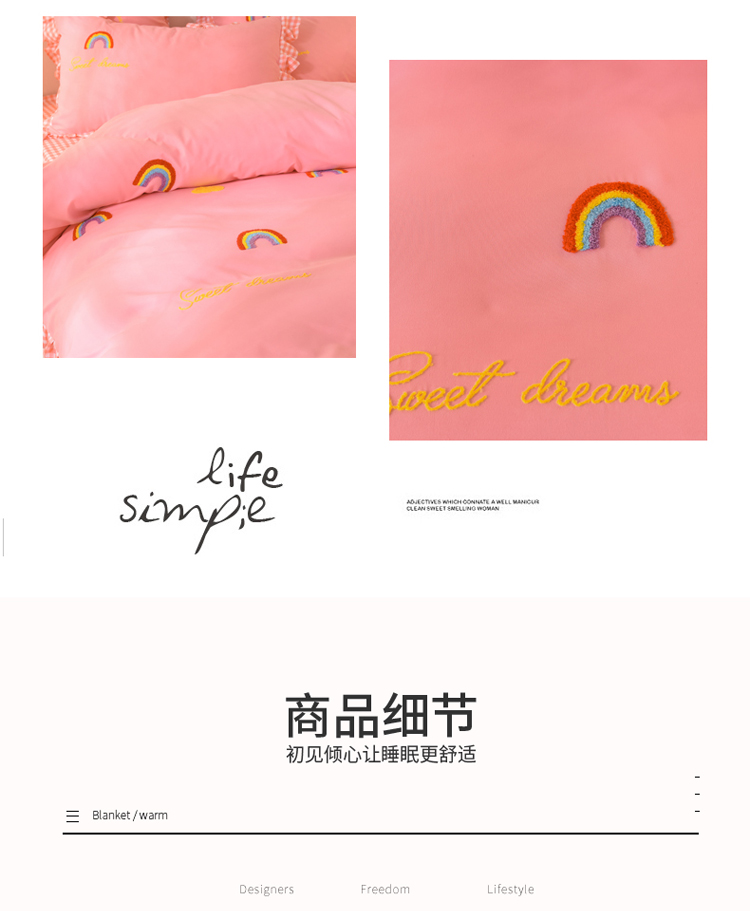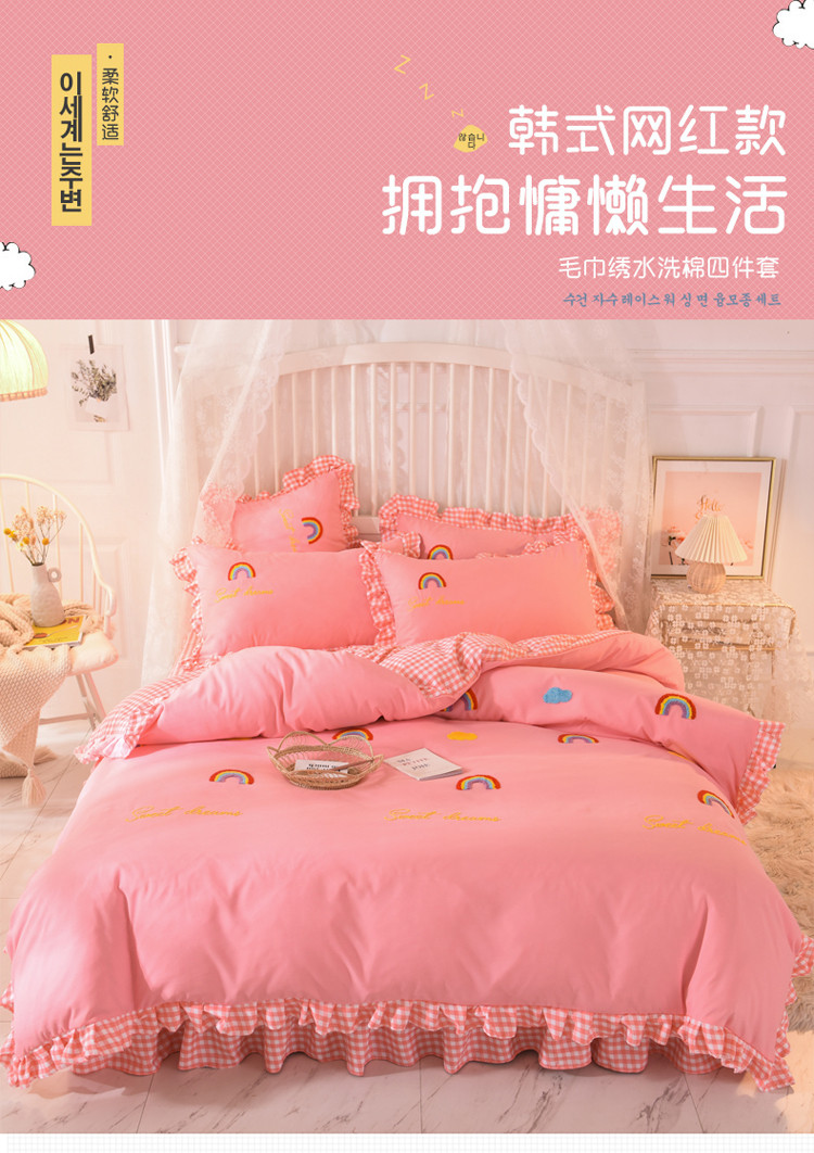 当前位置: 91家纺网 > 商品网购 > 床品套件 > 四件套 > 全棉普通四件套 > 欧冠家纺 2020新款毛巾绣色织四件套 彩虹-粉色