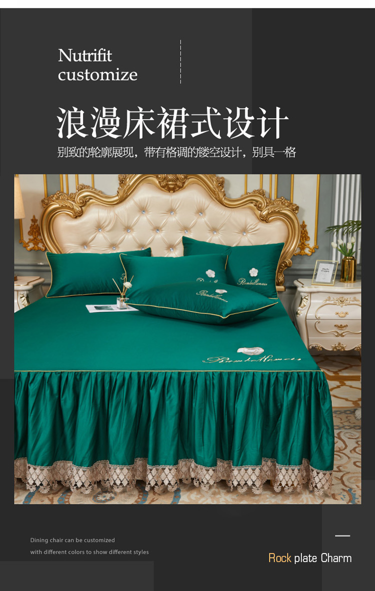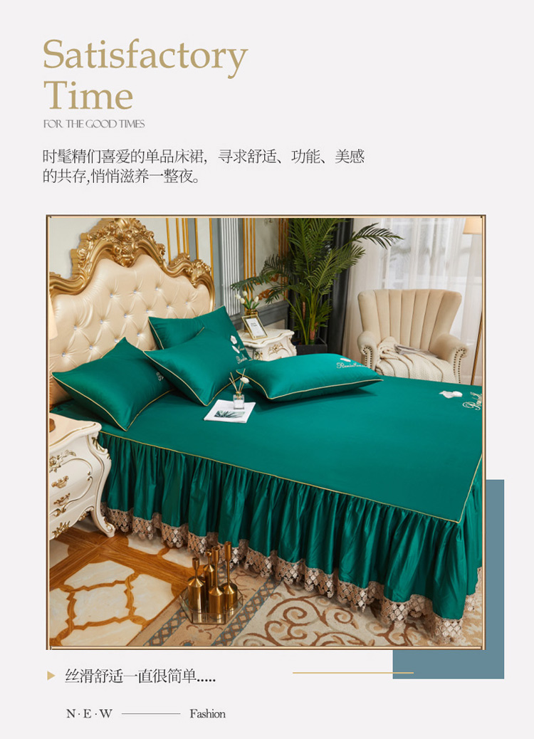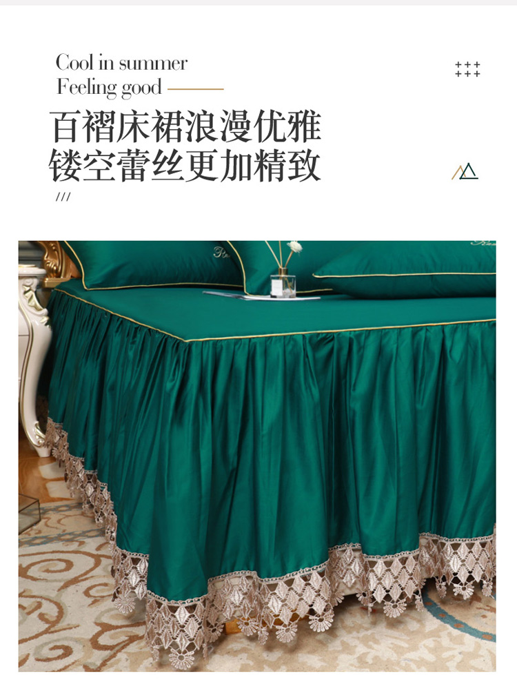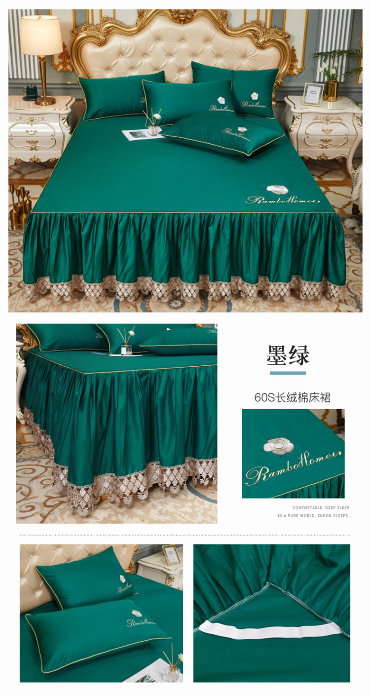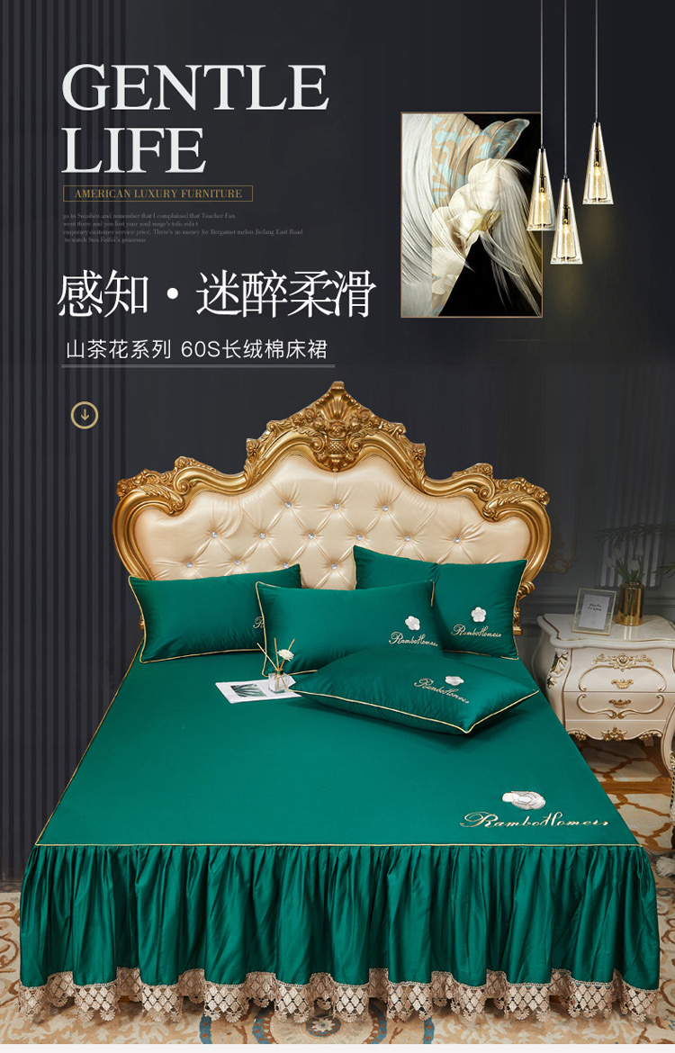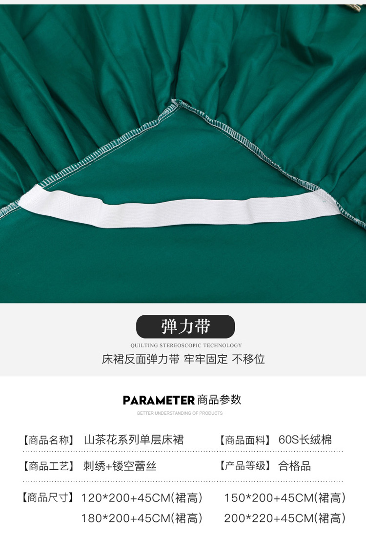 商品名称:菊上 2021新款60支长绒棉山茶花系列单层床裙 墨绿