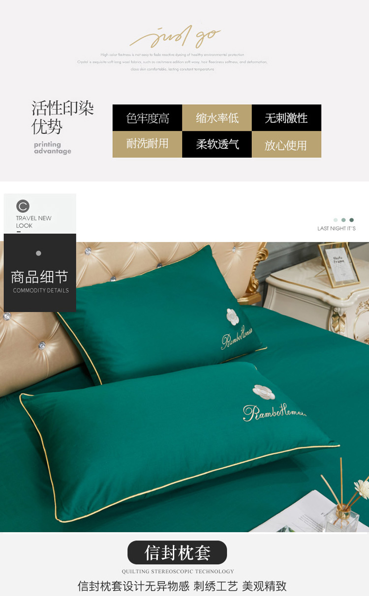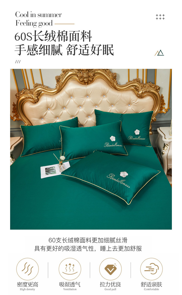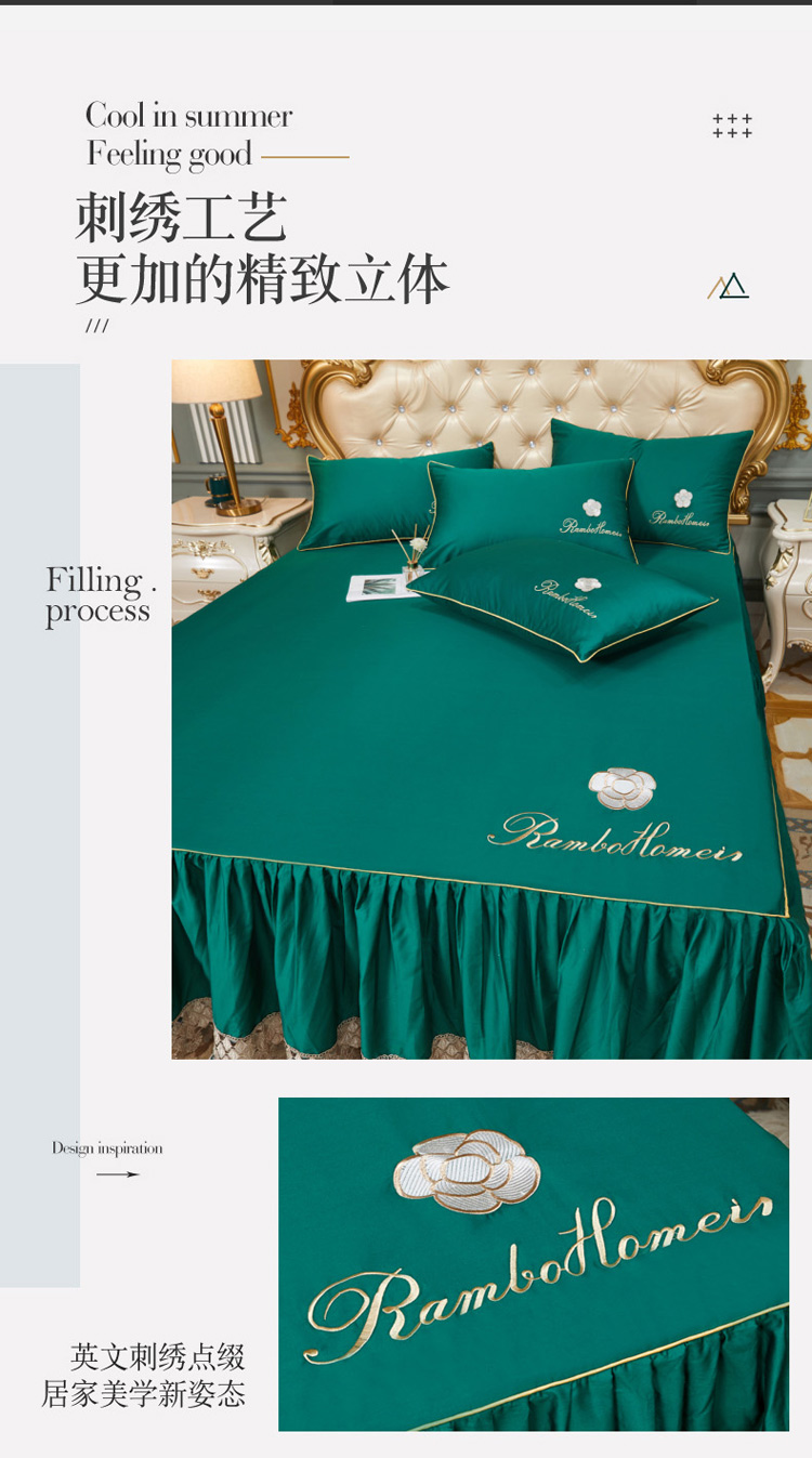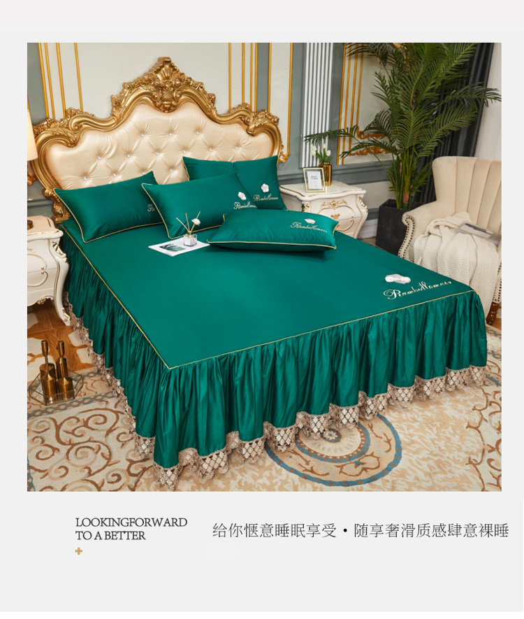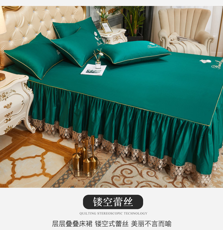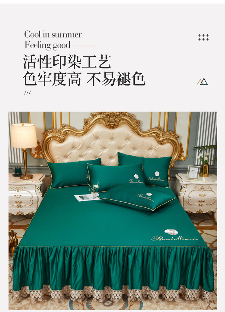商品名称:菊上 2021新款60支长绒棉山茶花系列单层床裙 墨绿