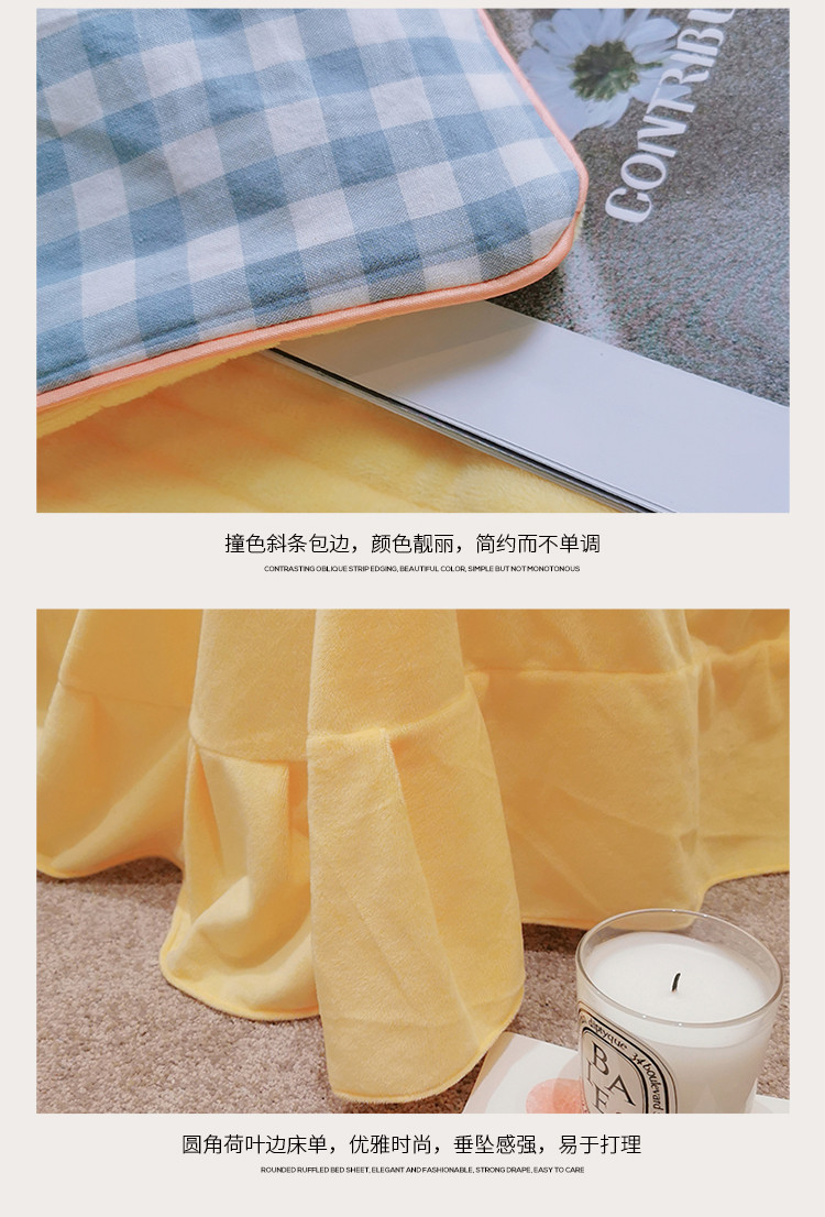 淑女公社 2020新款棉加绒晚安宝贝四件套 蓝白格加黄色绒