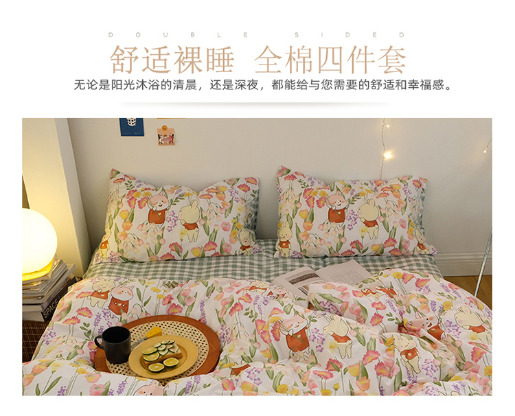 (总)窝米 2020春夏新品全棉13372四件套小波西风系列,草莓酱,木槿,小花花,小尤里