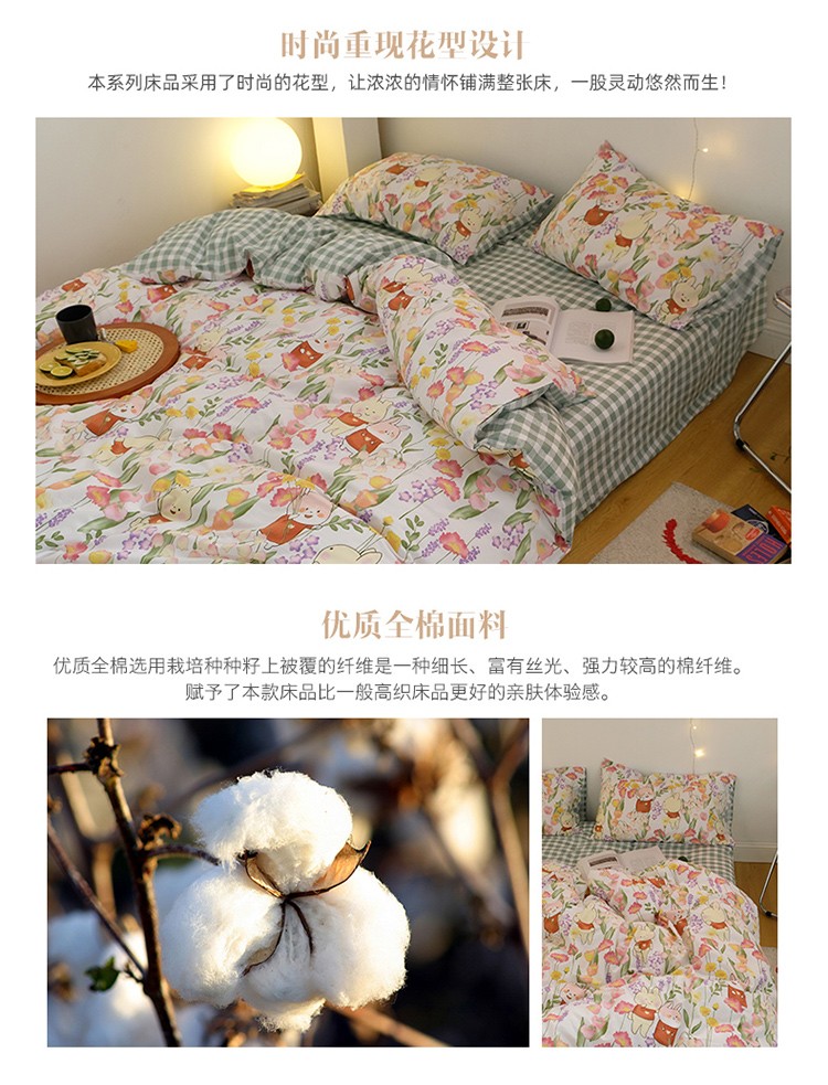 窝米 2020春夏新品全棉13372四件套小波西风系列小花花,小花花