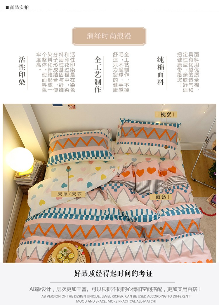 窝米 2020春夏新品全棉13372四件套小波西风系列草莓酱,草莓酱