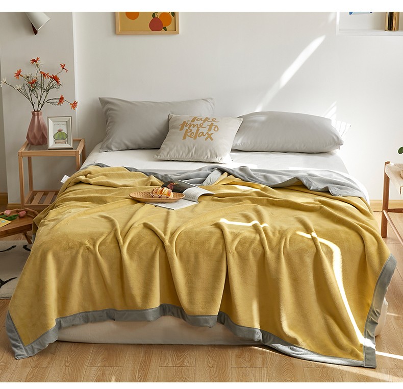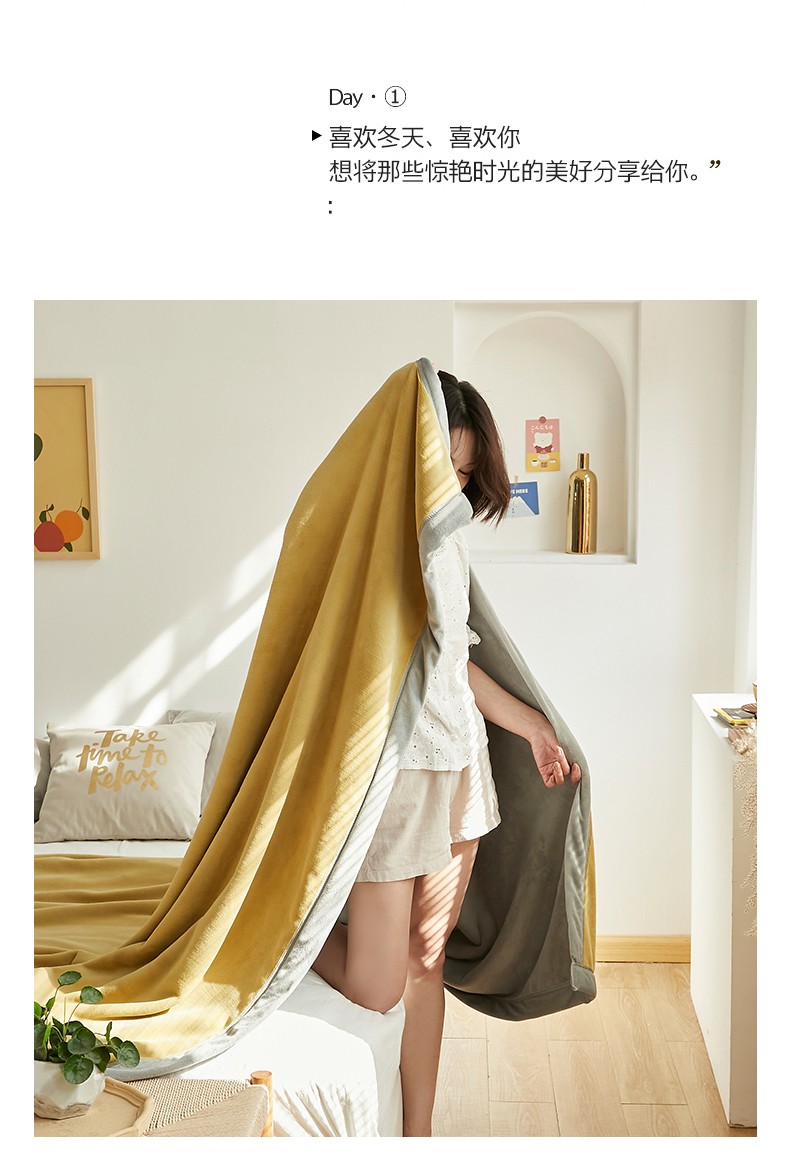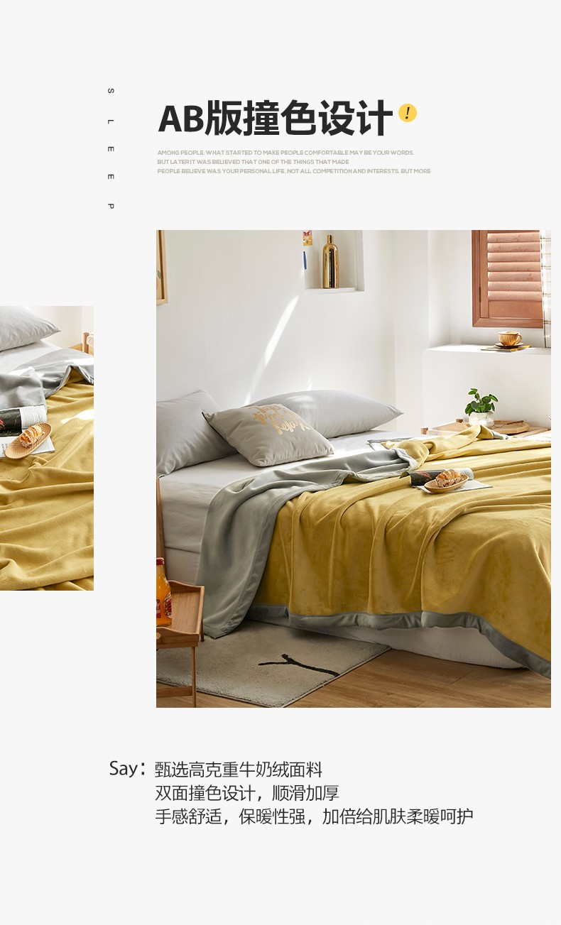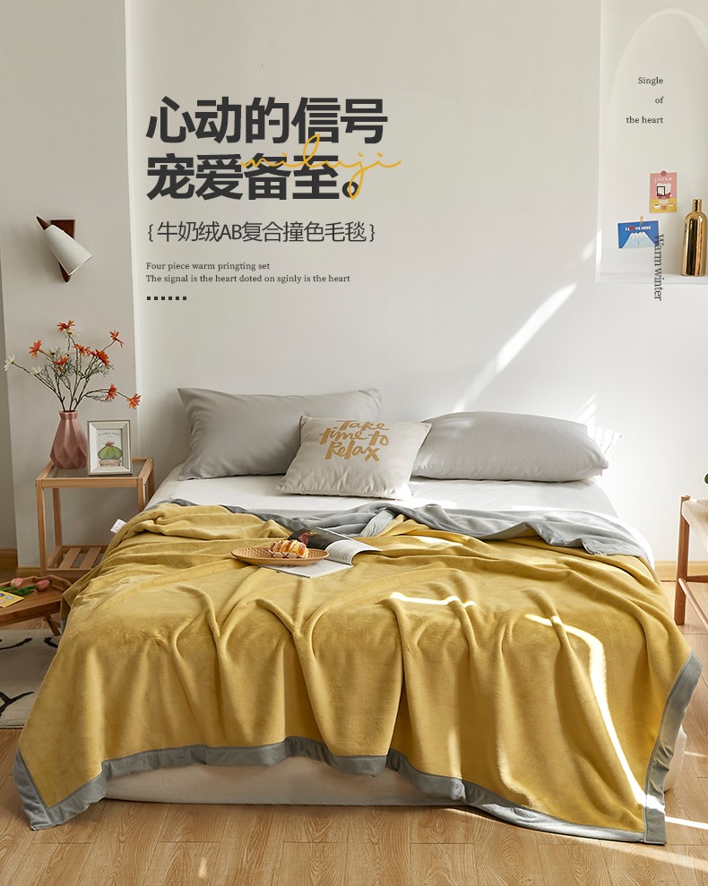 法芙娜家纺 新品 AB复合毯 牛奶绒加厚毛毯 黄灰