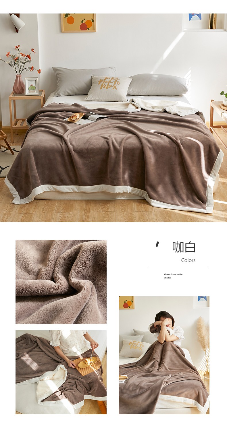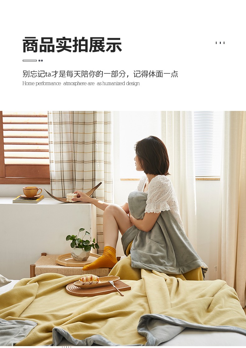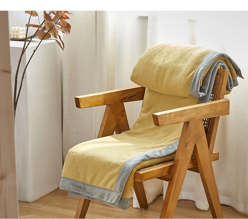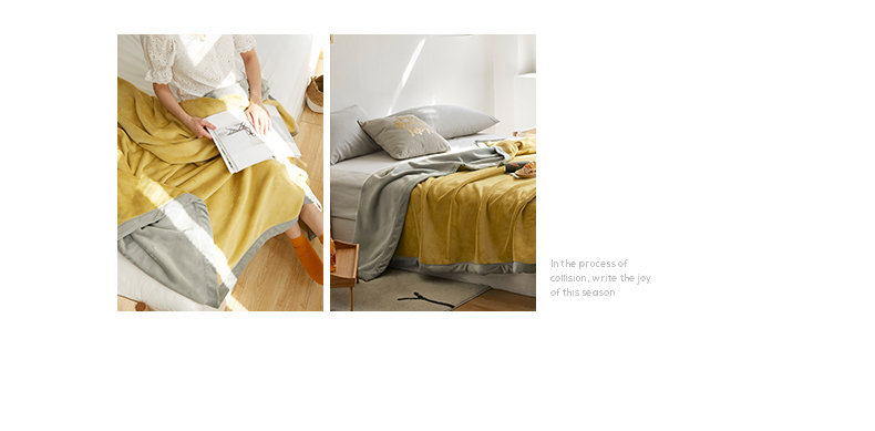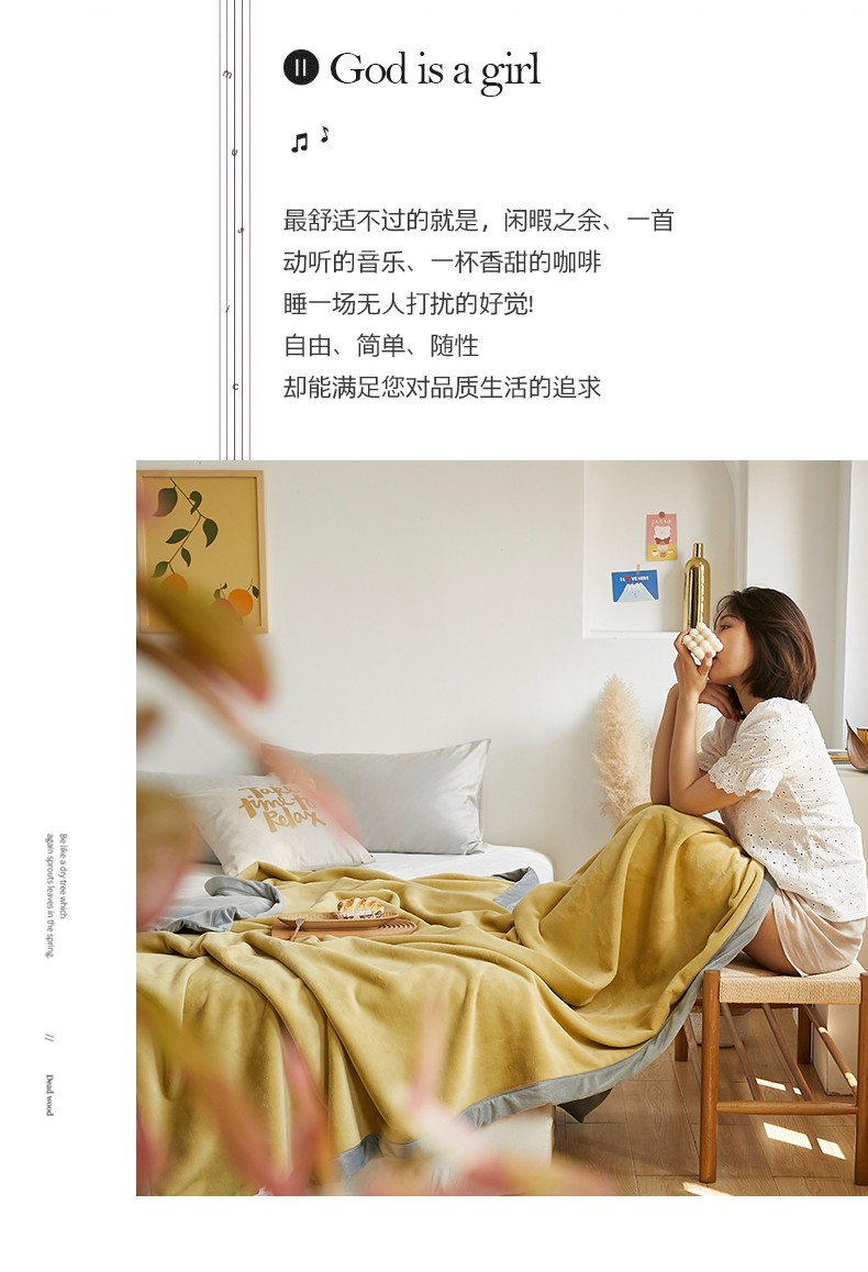 法芙娜家纺 新品 AB复合毯 牛奶绒加厚毛毯 黄灰