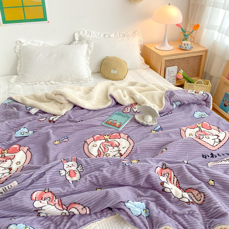 商品名称:顾里 新款ins网红少女心温暖牌魔法牛奶绒毛毯 梦幻独角兽