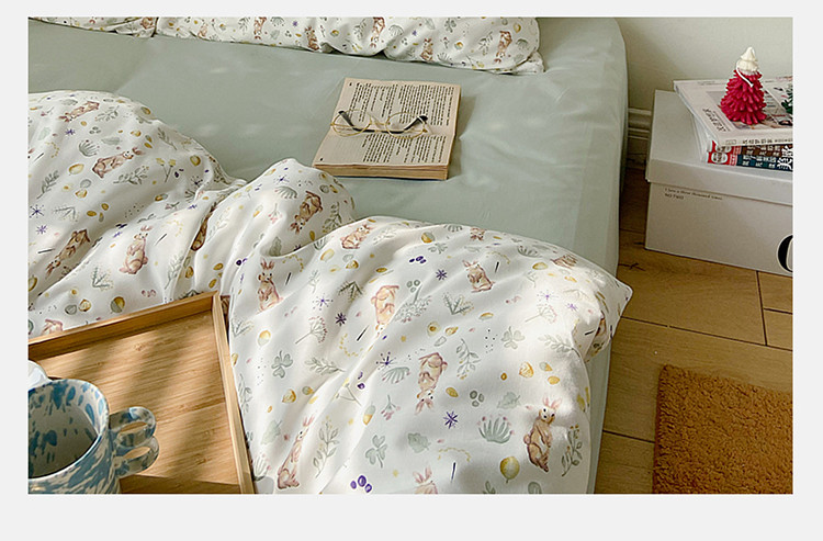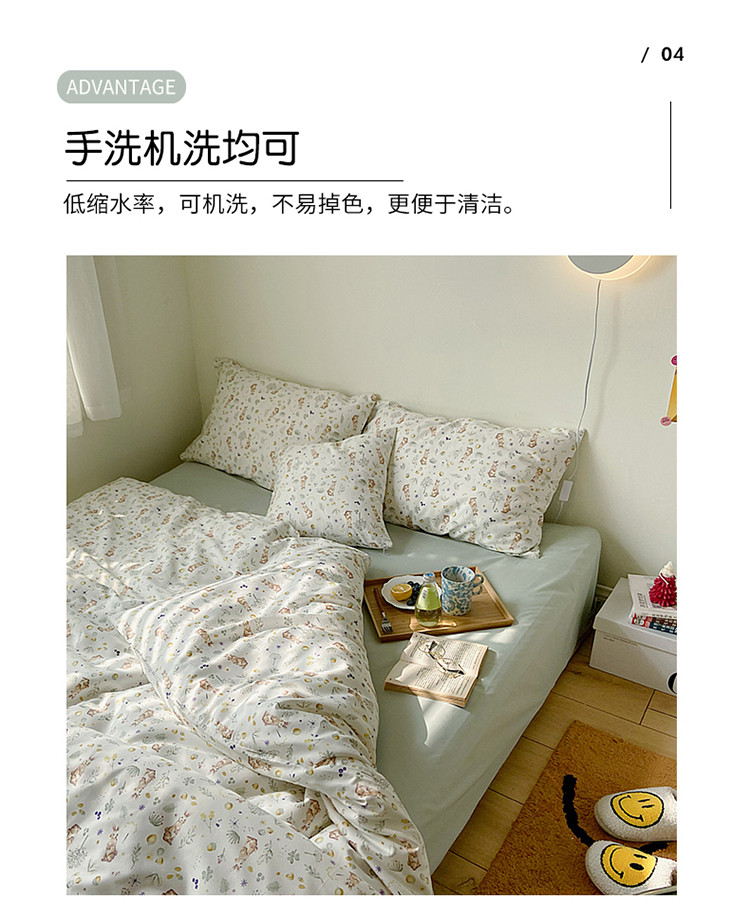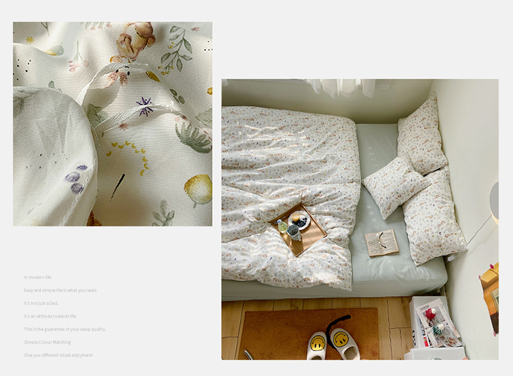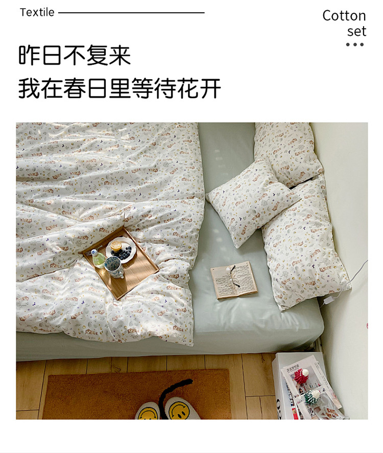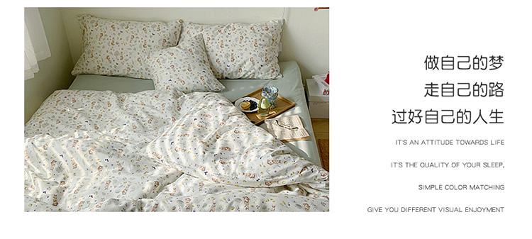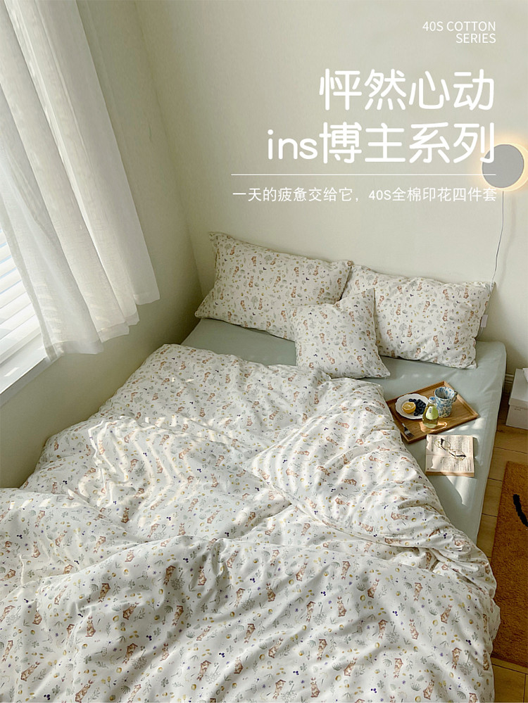 (总)尺素 全棉40支喷气13372韩国ins设计师四件套,花舞,篱落粉,篱落黄,落英,派对,童趣,涂鸦,小粉兔,雪地熊