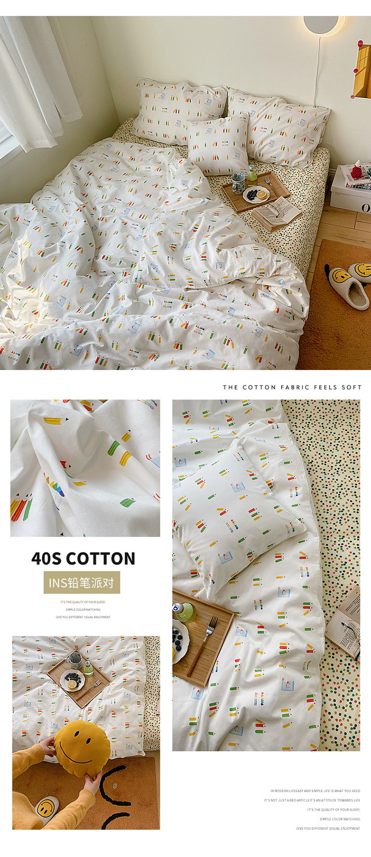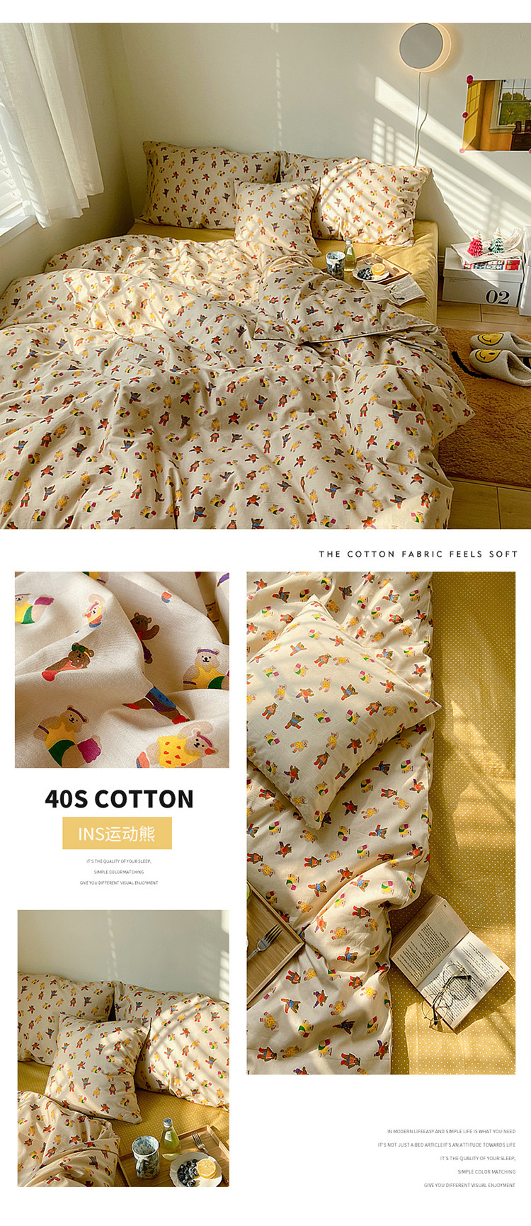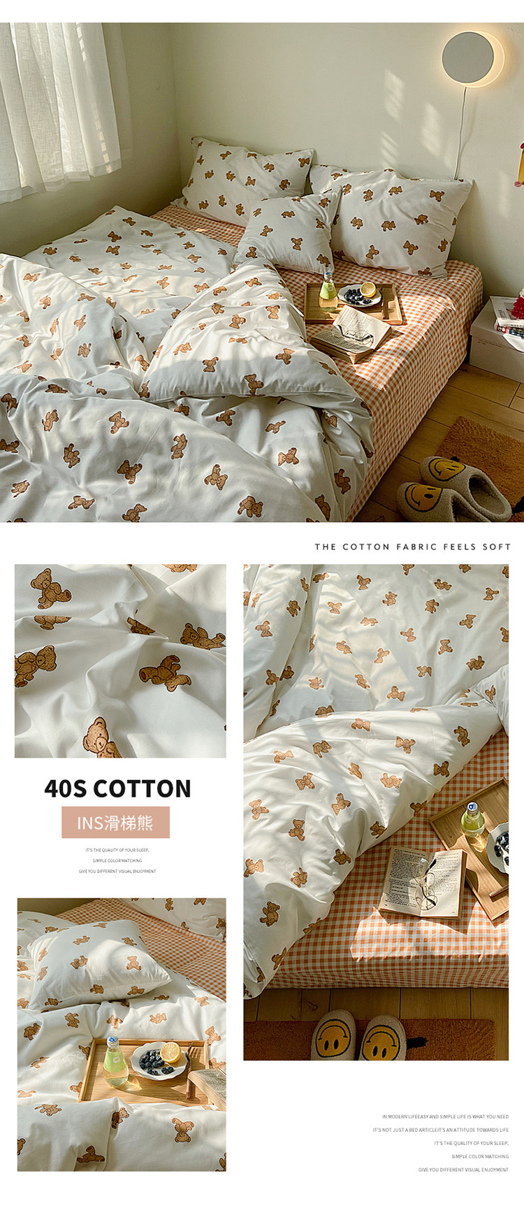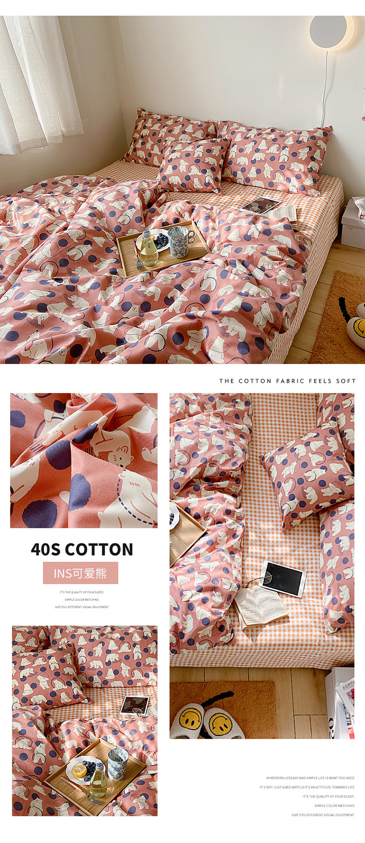 (总)尺素 2025新款纯棉卡通ins风四件套可爱少女风全棉被套纯色1.8床笠加大床单学生1.2三件套,告白熊--浅蓝,格调粉--奶黄,格调粉--桃粉,蓝白情书--浅蓝,清梦--冰沙绿,清梦--浅黄,小熊软糖--焦糖