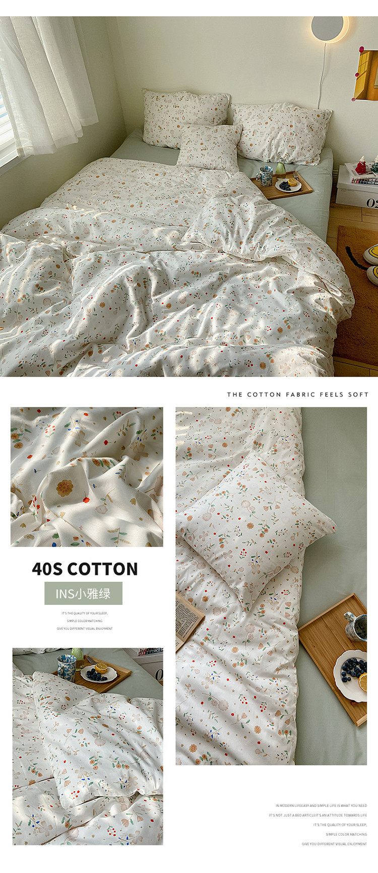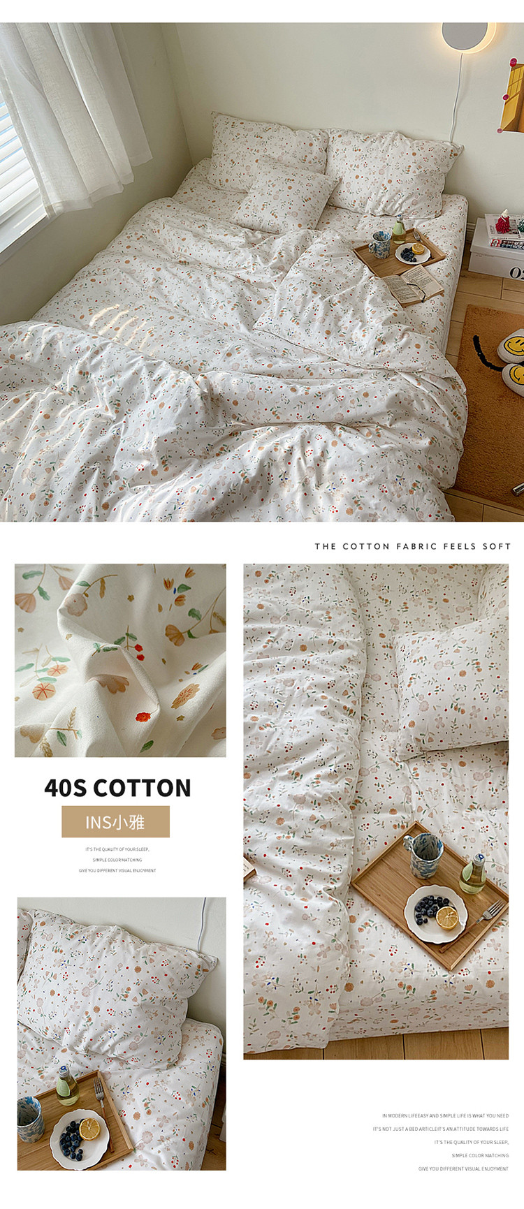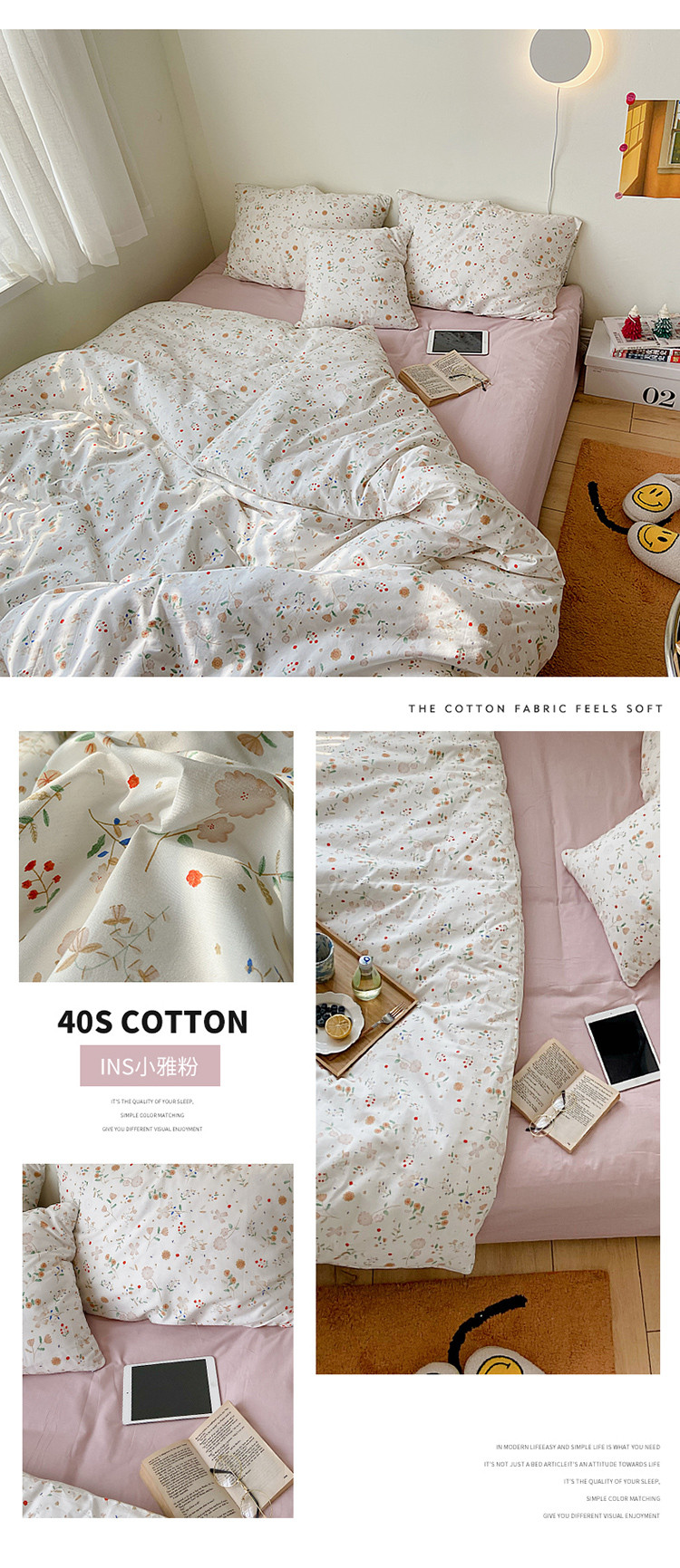 (总)尺素 2025新款田园小清新纯棉四件套出口韩国ins博主风全棉被套纯色加大床单1.8床笠印花枕套学生宿舍三件套,春不晚 桃粉,花似锦 奶白,紫鸢千夏紫