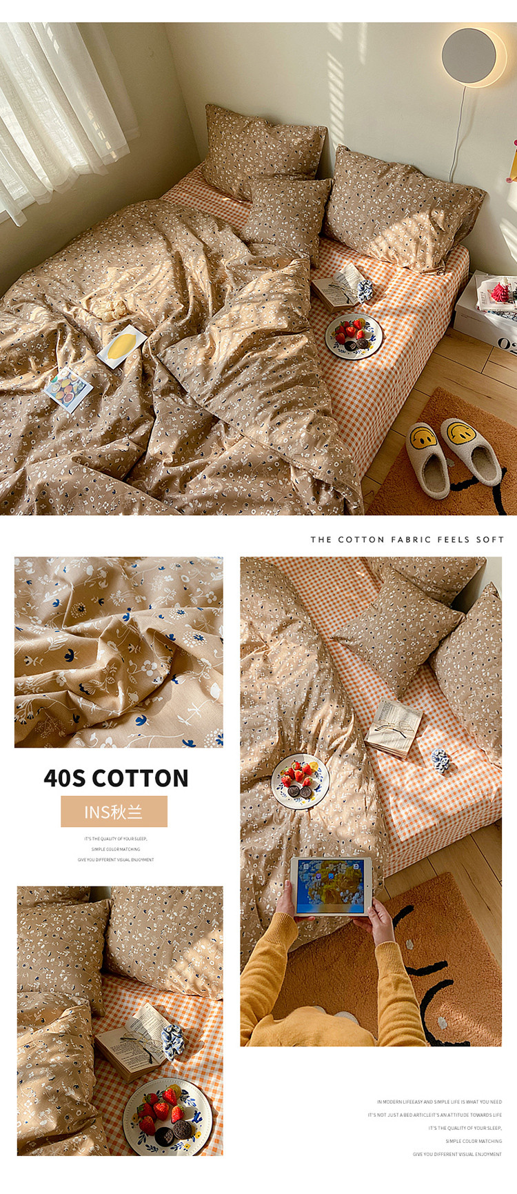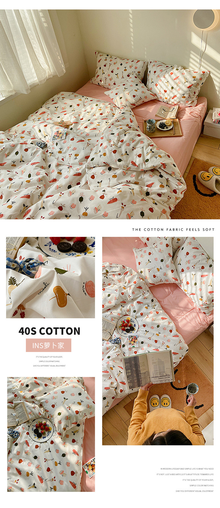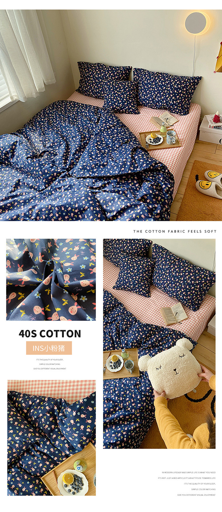 (总)尺素 2025新款田园小清新纯棉四件套出口韩国ins博主风全棉被套纯色加大床单1.8床笠印花枕套学生宿舍三件套,春不晚 桃粉,花似锦 奶白,紫鸢千夏紫