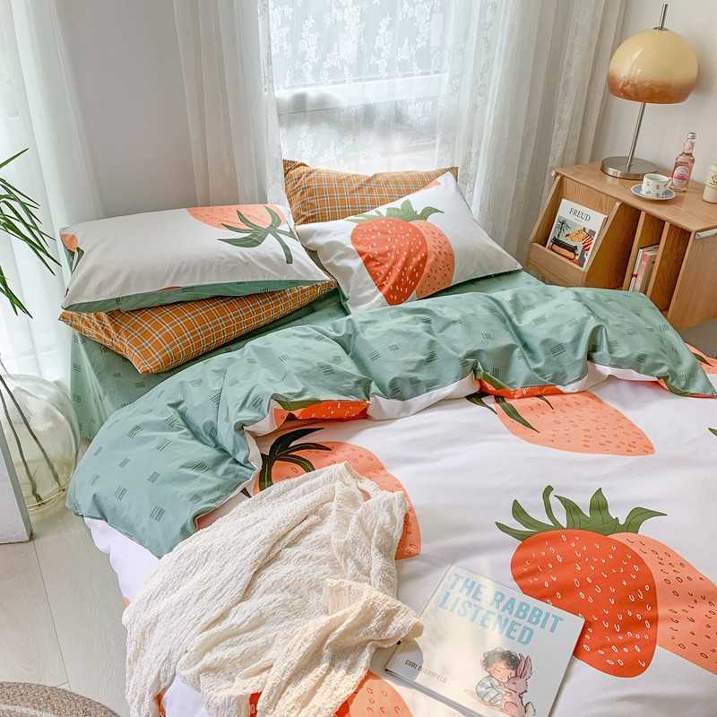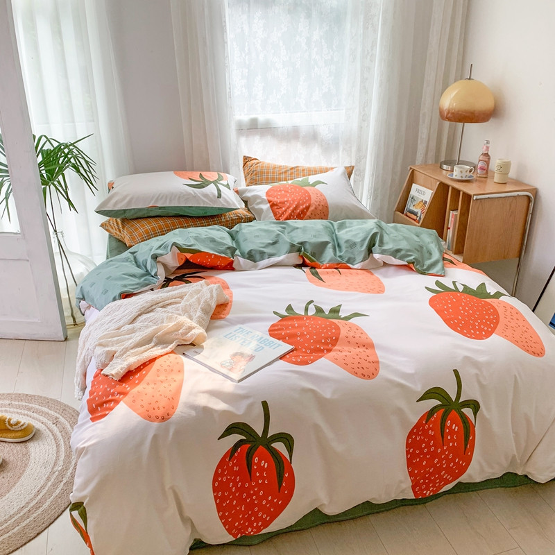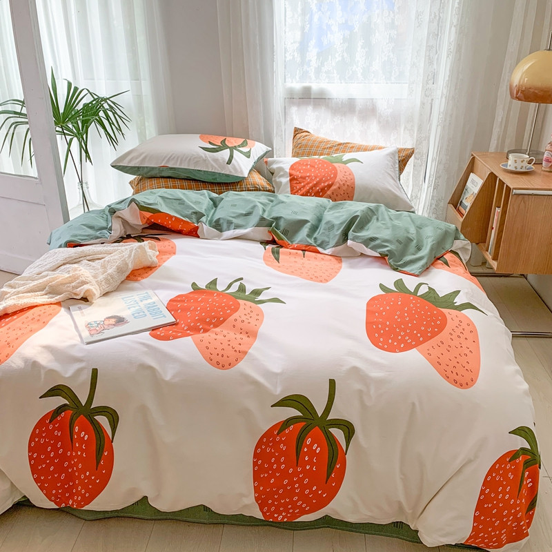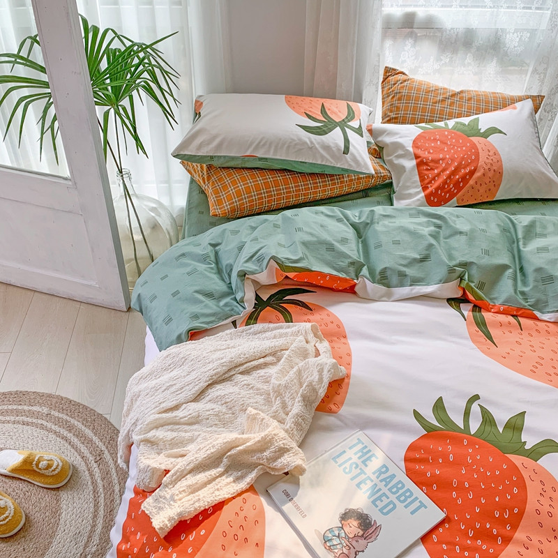 时年家纺 2021新款13372全棉小可爱四件套 草莓仙子