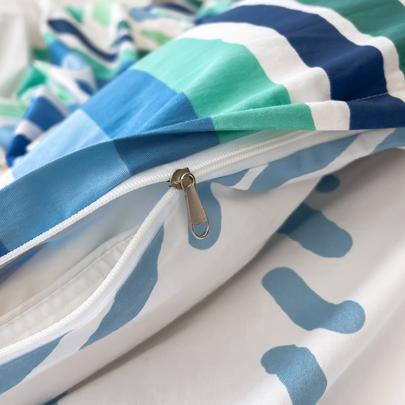 (总)感遇家纺 2022新款全棉印花四件套,格子小花,黑格恐龙,蓝色心情,浅暖