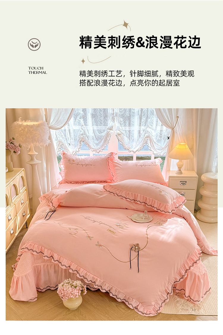(总)苏米娜家纺SUMINA 2025新款230g高克重韩版立体盘花牛奶蚕丝绒绣花四件套床裙款被套-洛丽塔系列,洛丽塔-嫩黄 ,洛丽塔-香芋紫,洛丽塔-珍珠粉, 洛丽塔-婴儿蓝