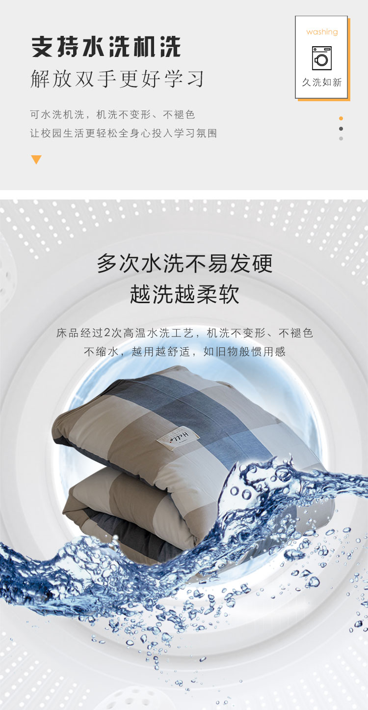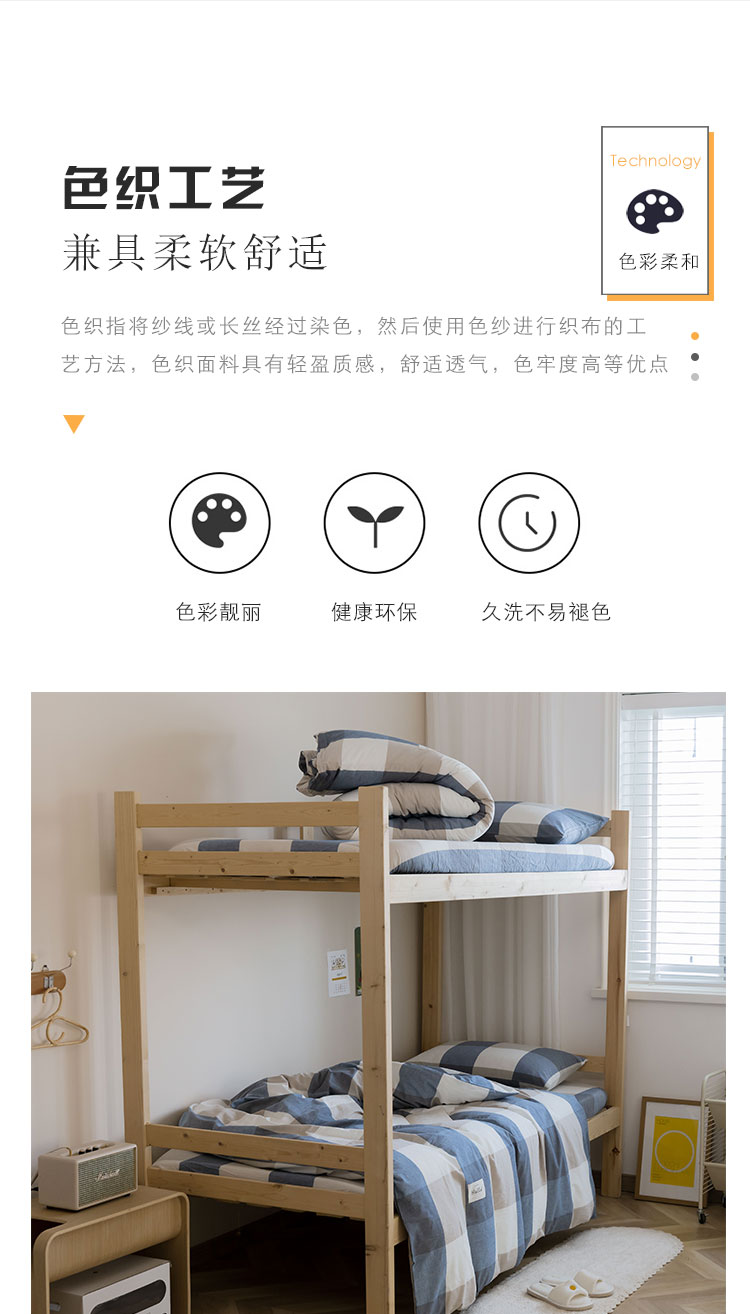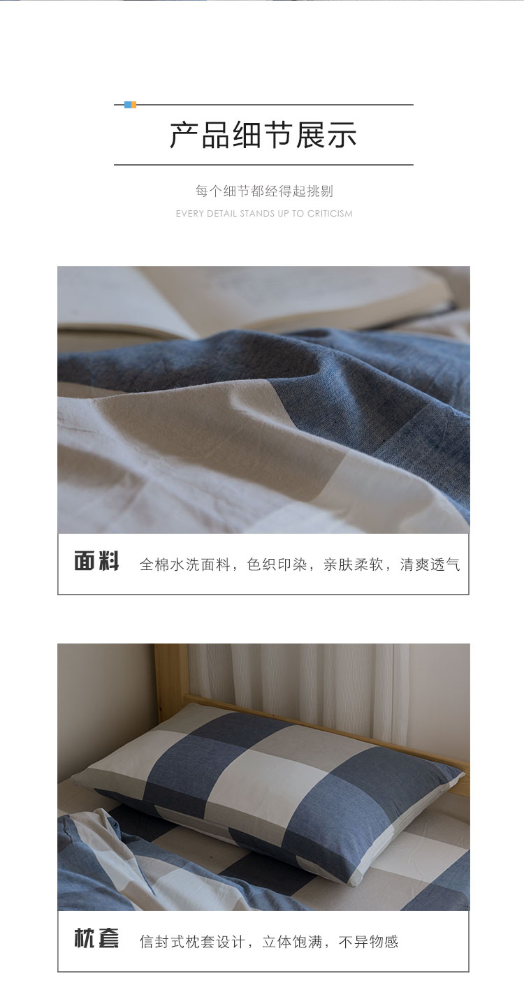 商品名称:寐眠 2021新款全棉水洗棉无印学生三件套四件套 蓝大格
