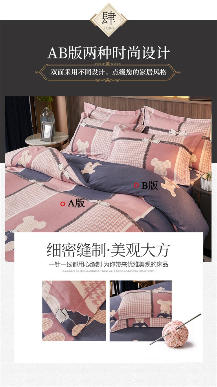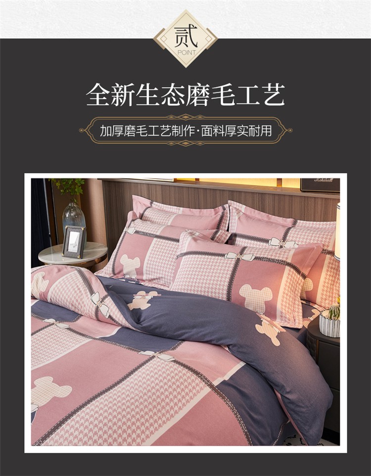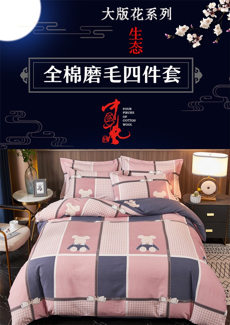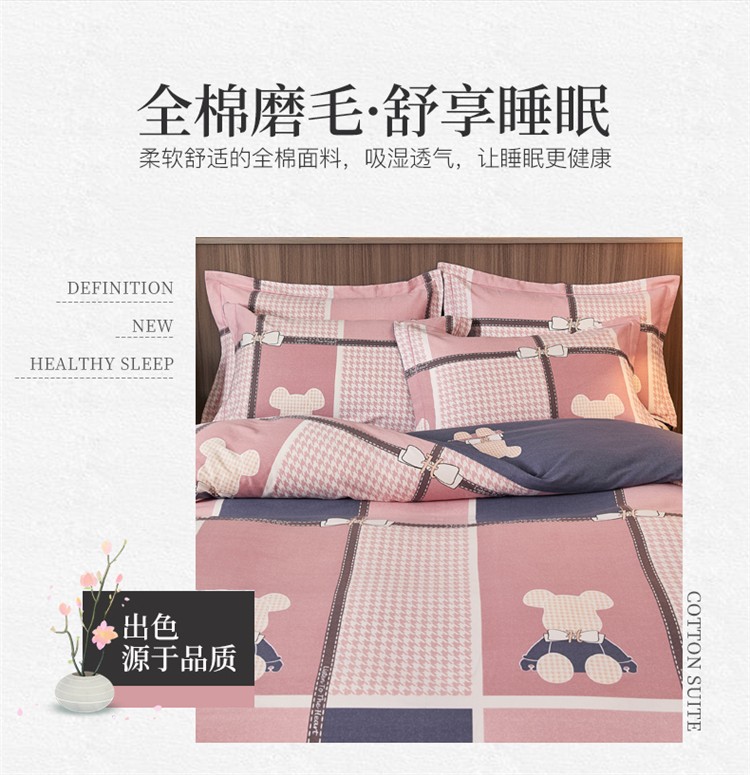 芊寻家居 2024新款全棉大版磨毛四件套 可爱熊