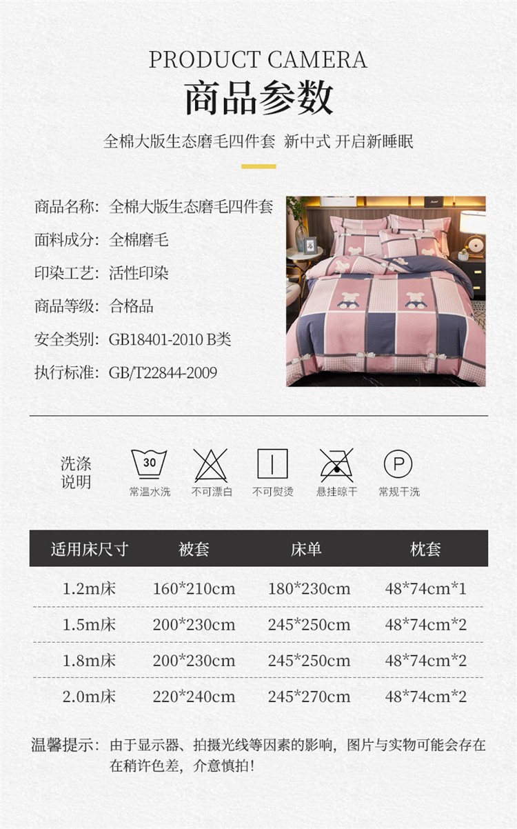 商品名称:芊寻家居 2024新款全棉大版磨毛四件套 可爱熊
