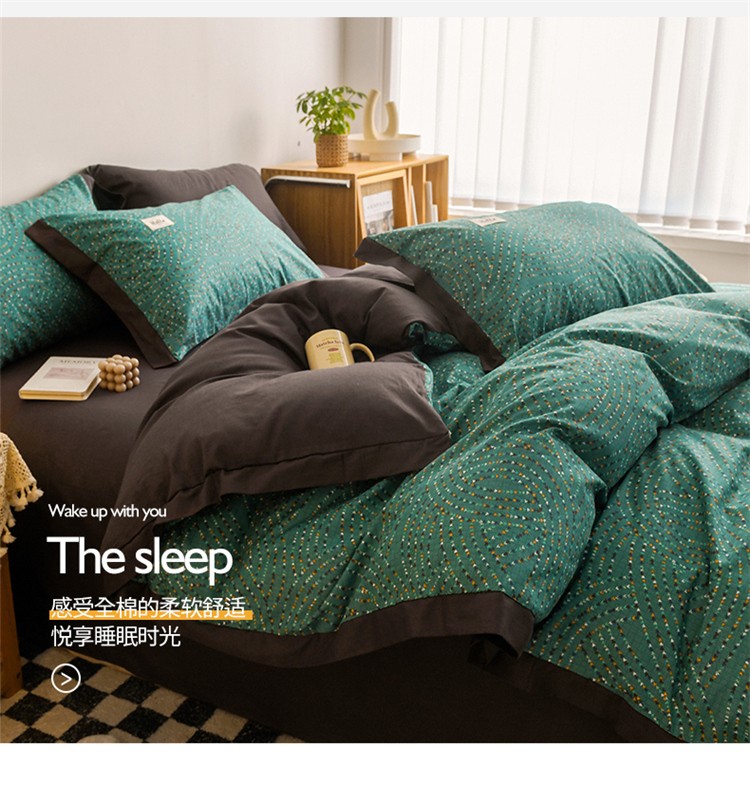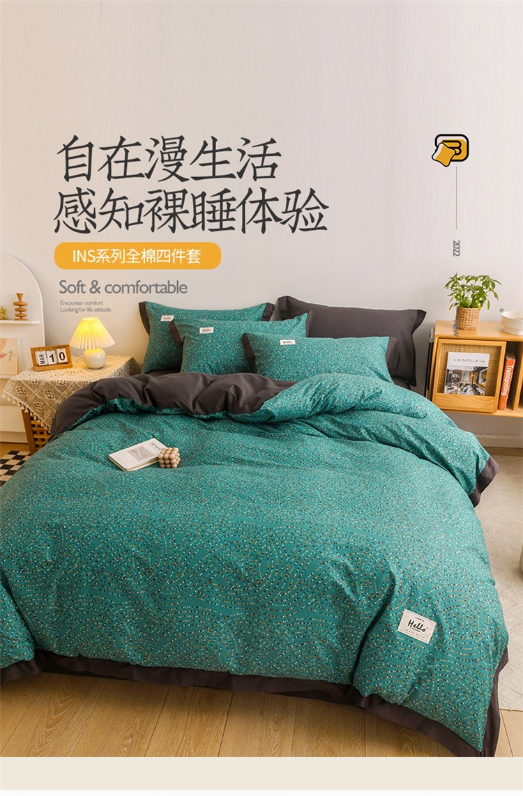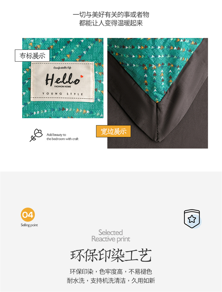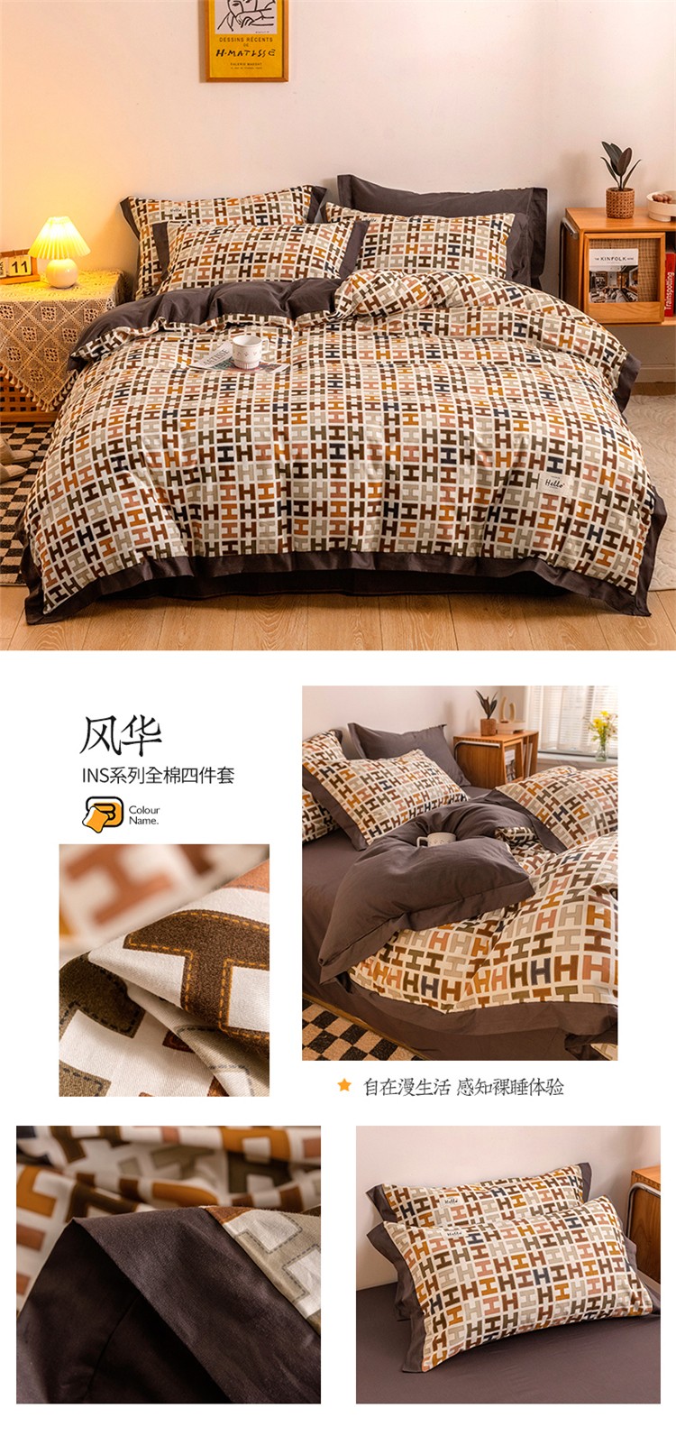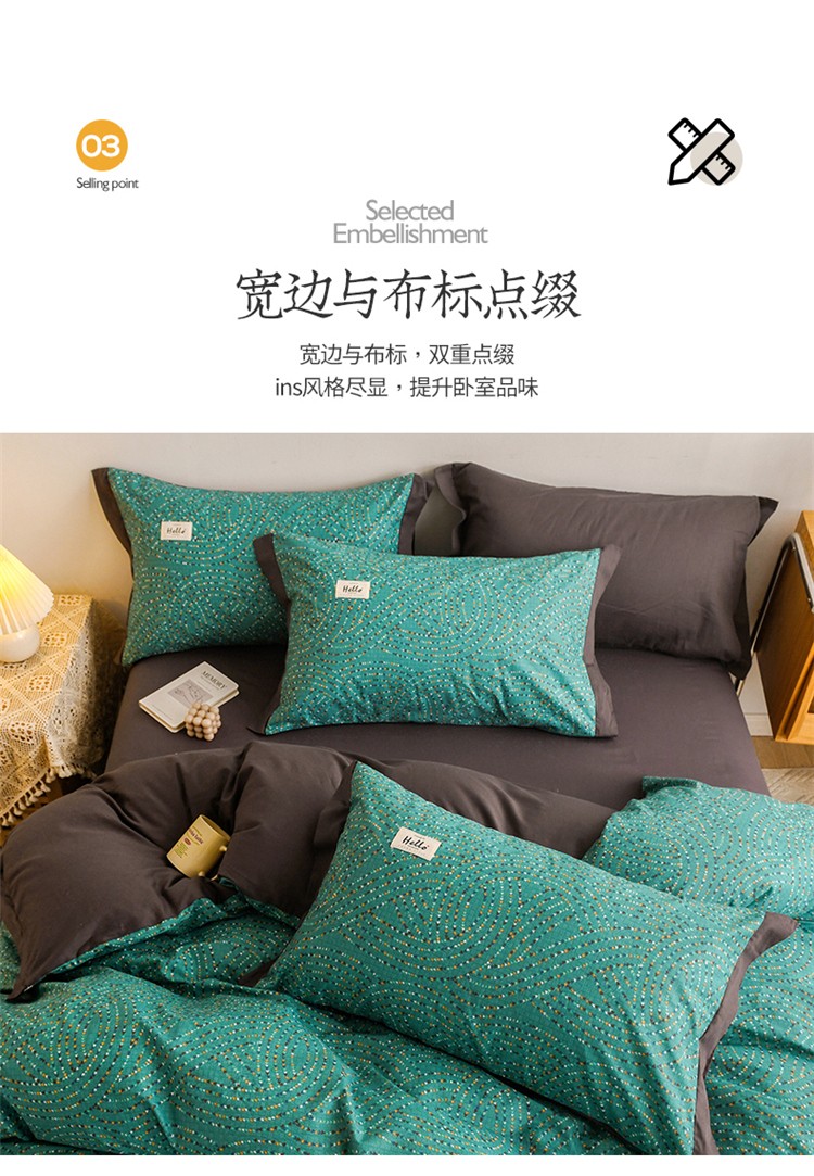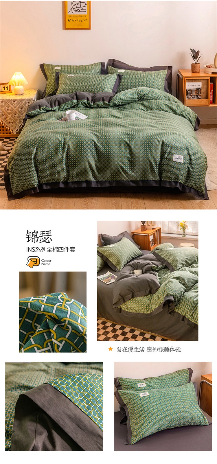 商品名称:(总)花言狐语2025新款全棉色布13372拼角工艺款四件套