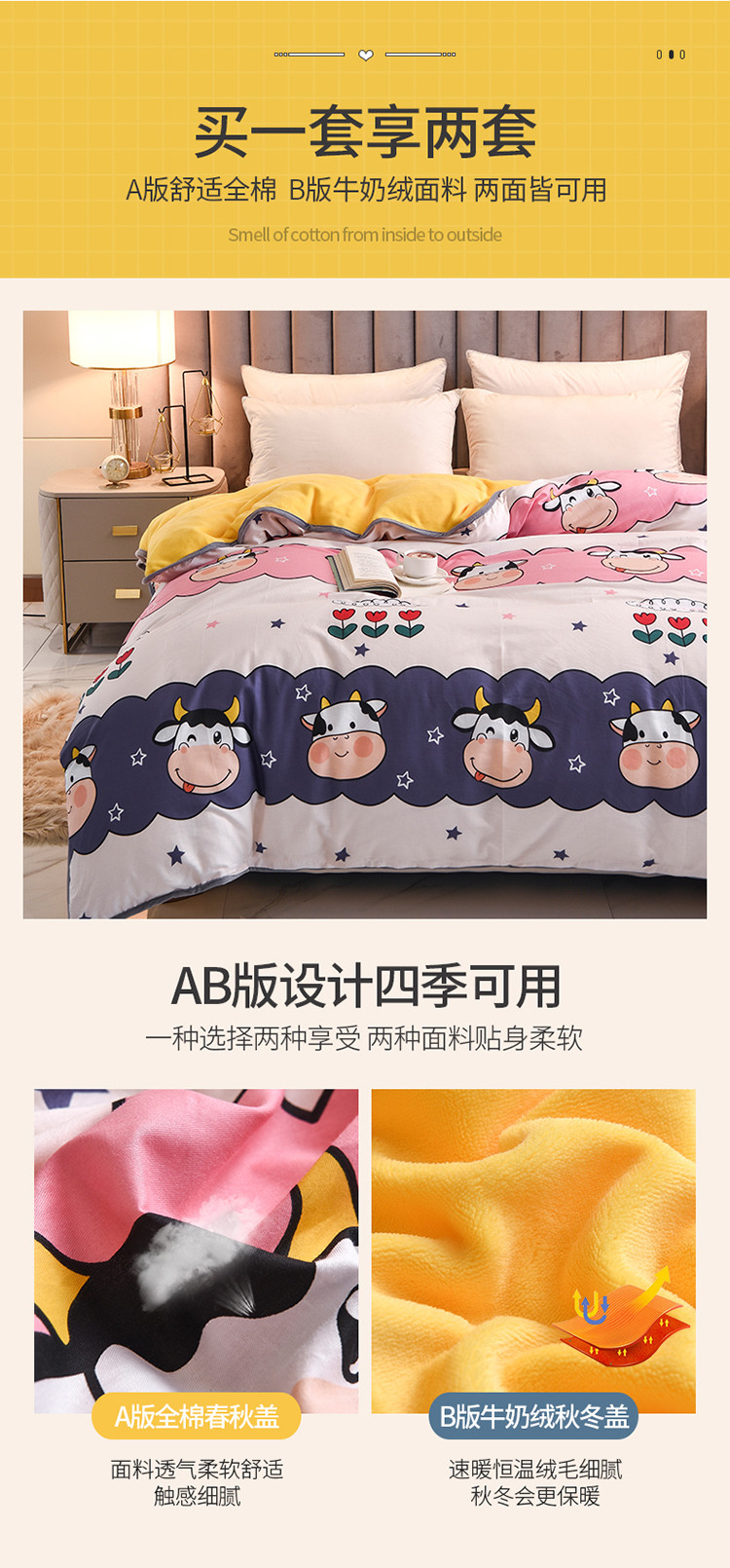 琪琪阁 2023新款A棉B绒棉加绒牛奶绒四件套单被套 快乐伙伴,快乐伙伴