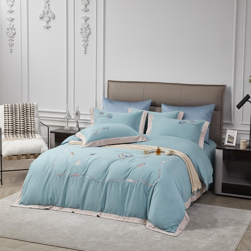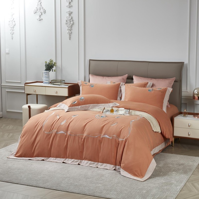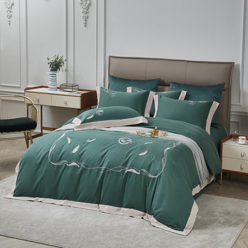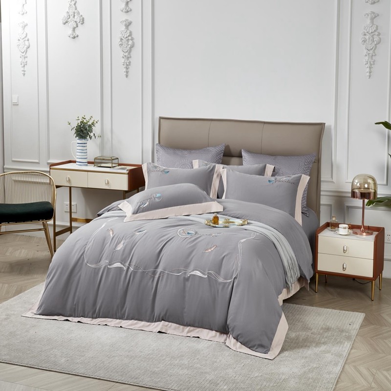 总玖玖爱家纺 纯棉100支贡缎长绒棉刺绣被套三件套四件套加大四件套,白色,高级灰,卡其,蓝灰,绿色,浅桔,深蓝,紫豆沙