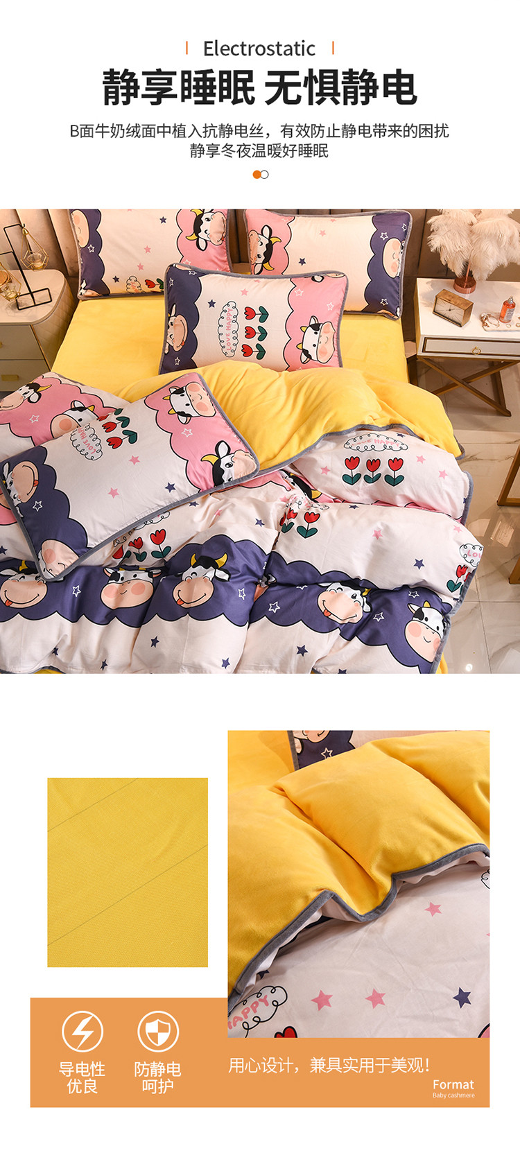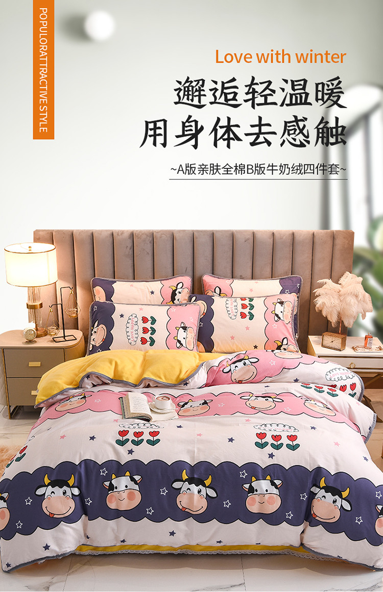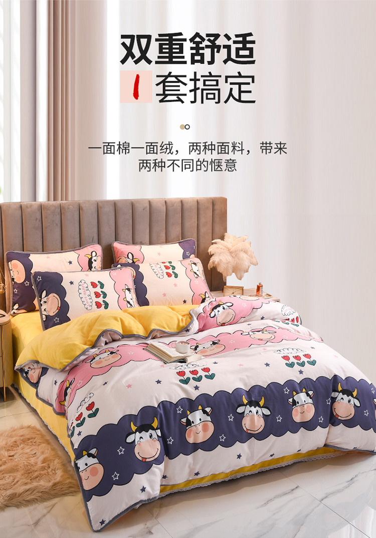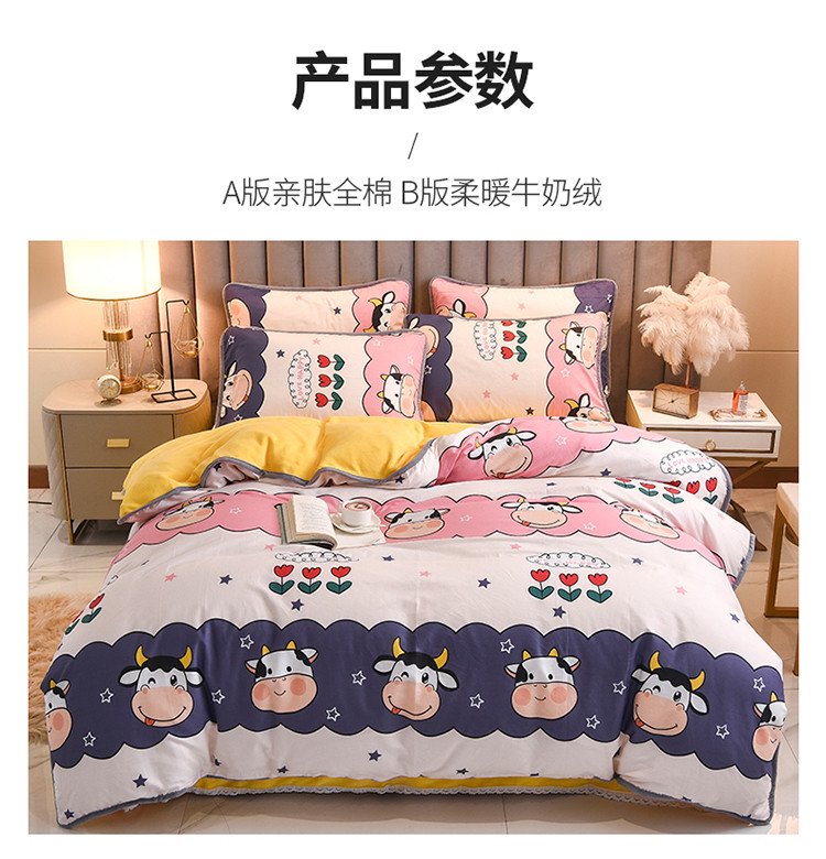 当前位置: 91家纺网 > 商品网购 > 床品套件 > 四件套 > 牛奶绒四件套 > 琪琪阁 2021新款全棉+牛奶绒四件套勇敢牛牛