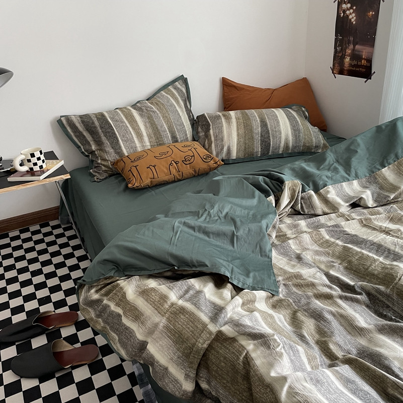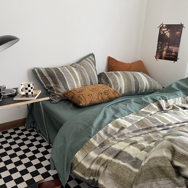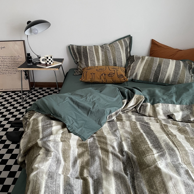 (总)恋恋三季 2025新款中古风色织水洗棉四件套-琉璃伯爵,琉璃伯爵【枕套bv绿+藏蓝】,琉璃伯爵【枕套混搭bv绿】,琉璃伯爵【枕套混搭藏蓝】,琉璃伯爵【枕套条纹】