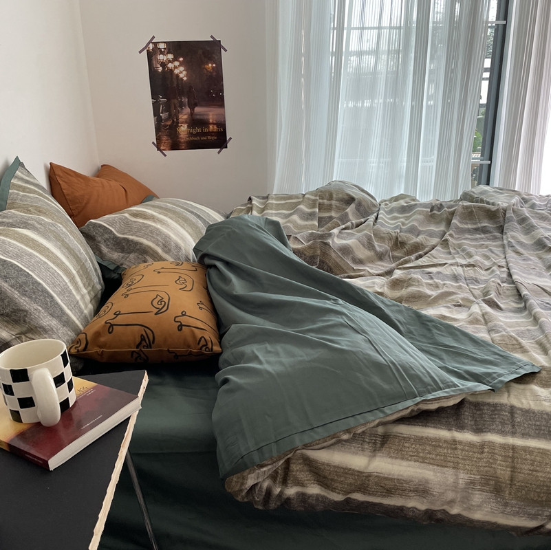 (总)恋恋三季 2025新款ins博主简约条纹极简风纯棉单被套,色织水洗-黑白世界,色织水洗-空白格