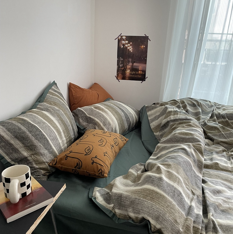 (总)恋恋三季 2025新款亲肤舒适A类双层纱色织四件套-富士山下(实拍图),富士山下