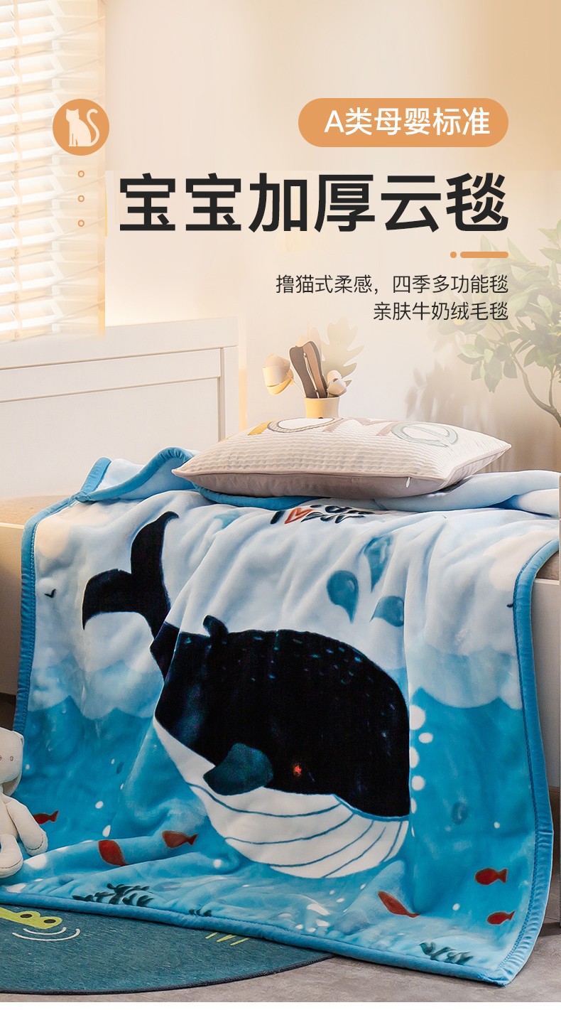 商品名称:儿童双层云毯大版花 鲸鱼宝宝