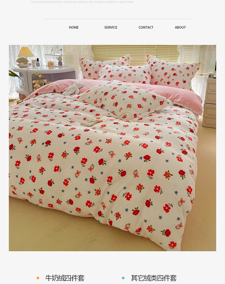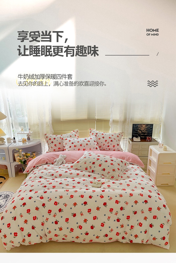 当前位置: 91家纺网 > 商品网购 > 床品套件 > 四件套 > 牛奶绒四件套 > 慕尚2022新款田园花卉类牛奶绒四件套 浅碎时光