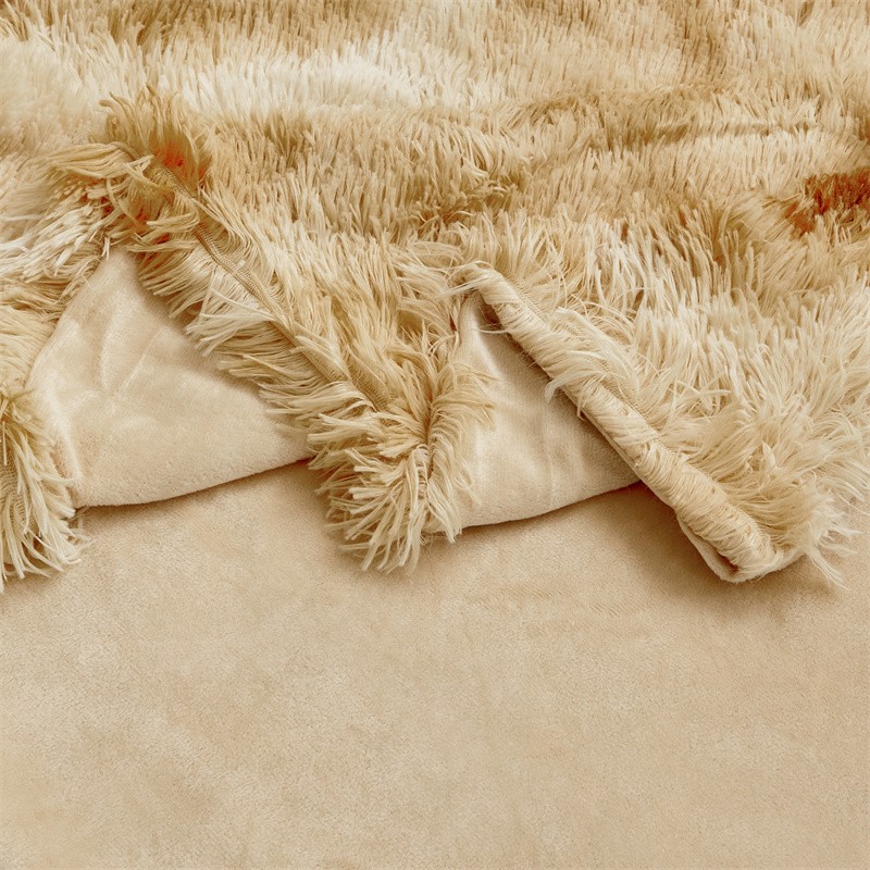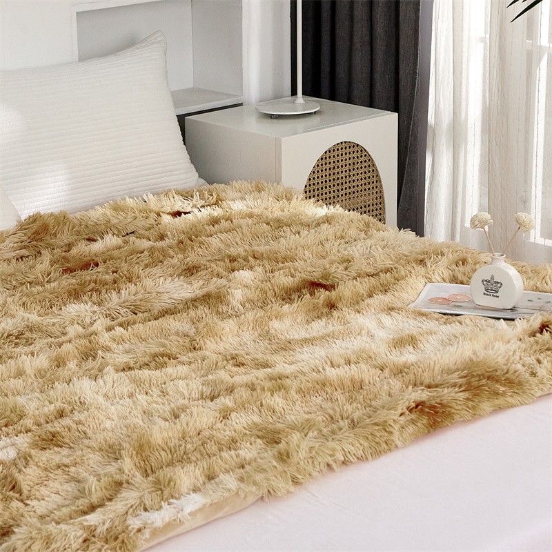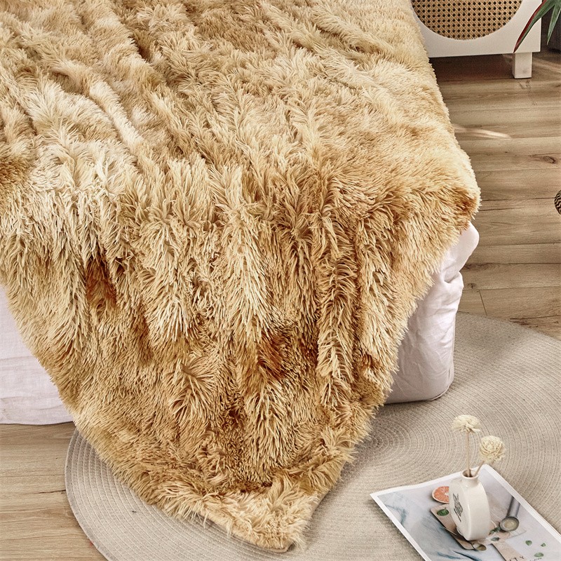 品尚嘉 水貂绒毛毯长毛绒法莱绒双层跨境外贸毯子 扎染-黄棕