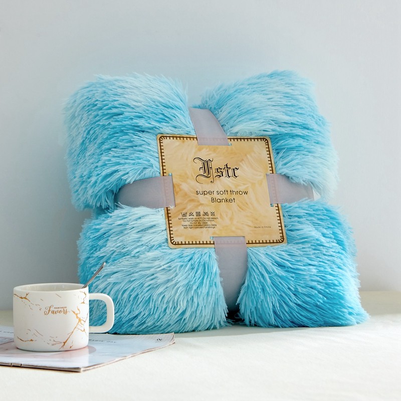 商品名称:品尚嘉 水貂绒毛毯长毛绒法莱绒双层跨境外贸毯子 扎染-水蓝