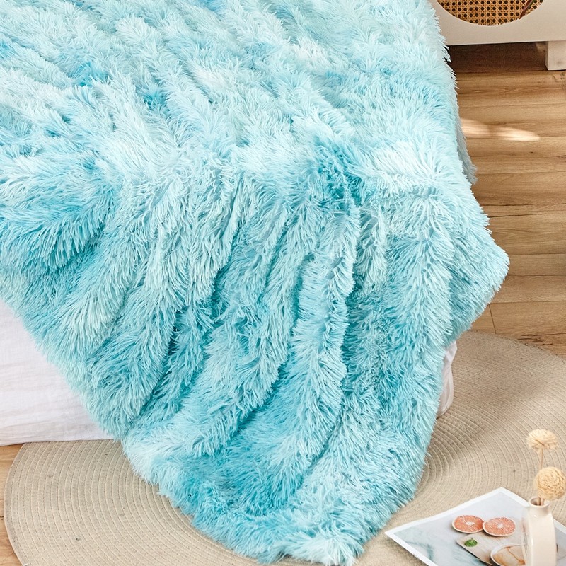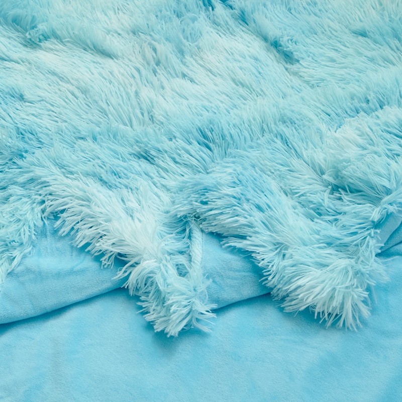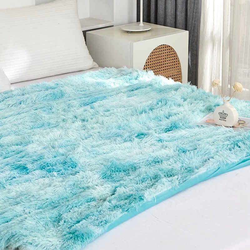 品尚嘉 水貂绒毛毯长毛绒法莱绒双层跨境外贸毯子 扎染-水蓝