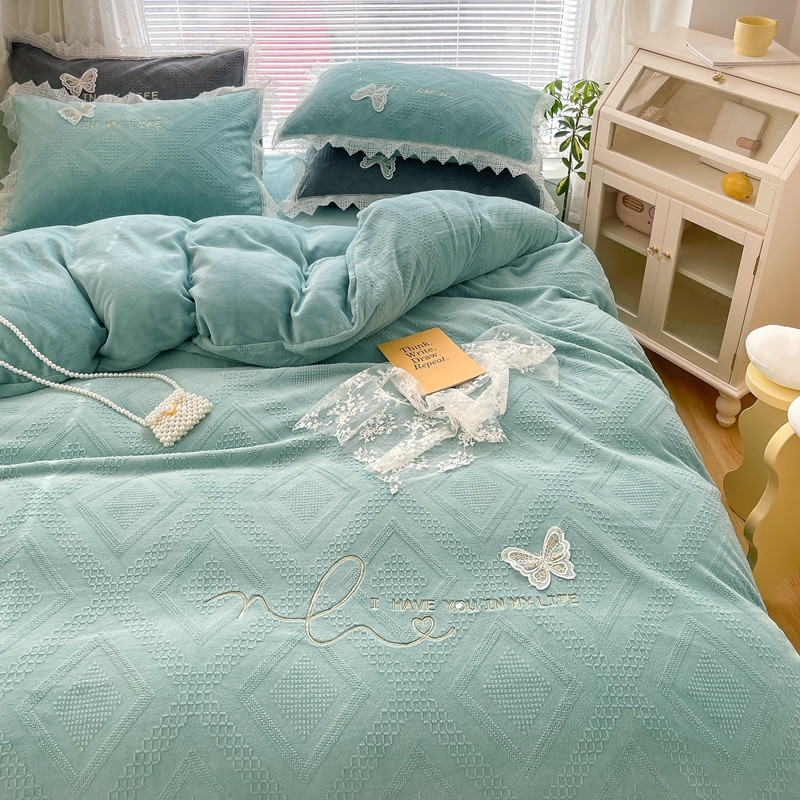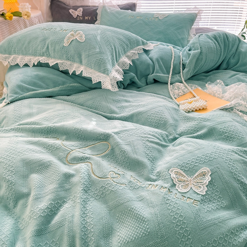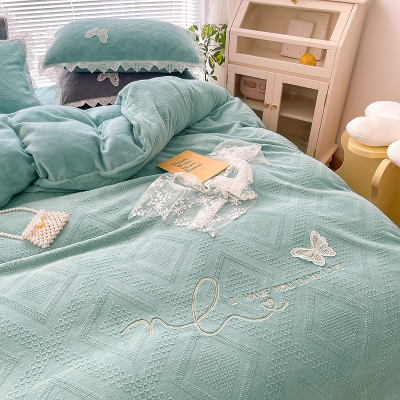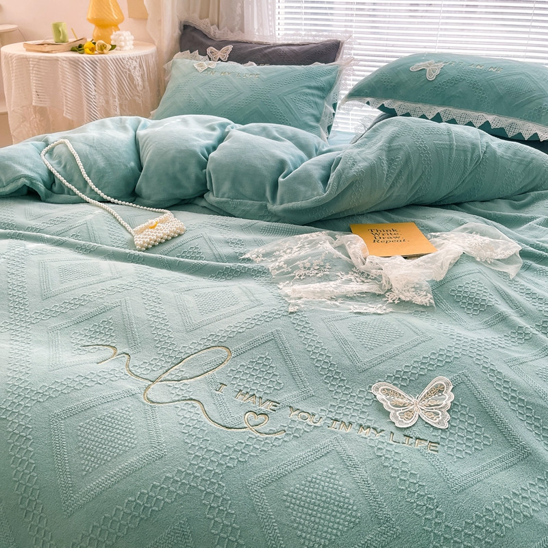 当前位置: 91家纺网 > 商品网购 > 床品套件 > 四件套 > 牛奶绒四件套 > 北纬27度 2021新款浮雕牛奶绒华尔兹四件套 清新绿