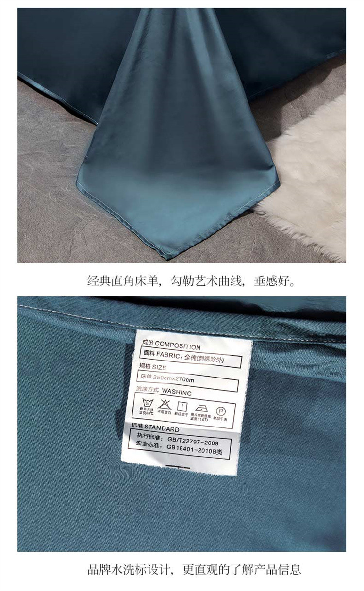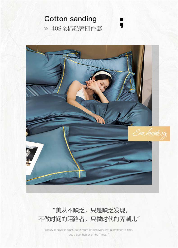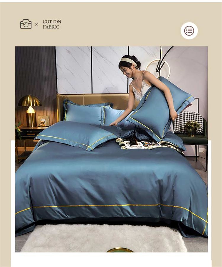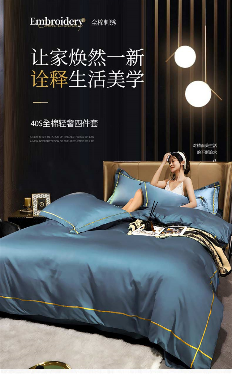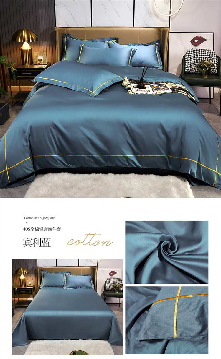 商品名称:布乐意 2021新款酒店款40S全棉轻奢风四件套 宾利蓝