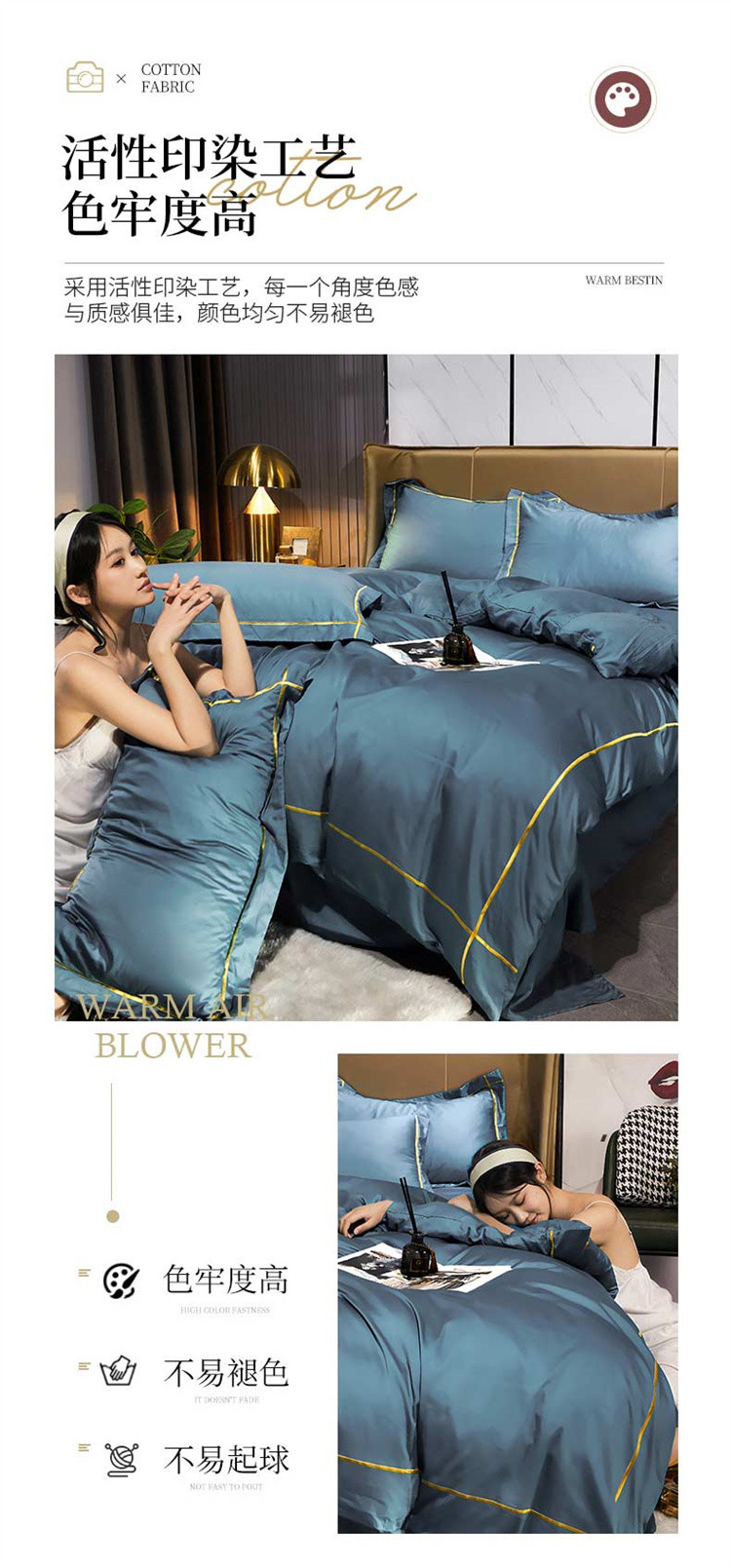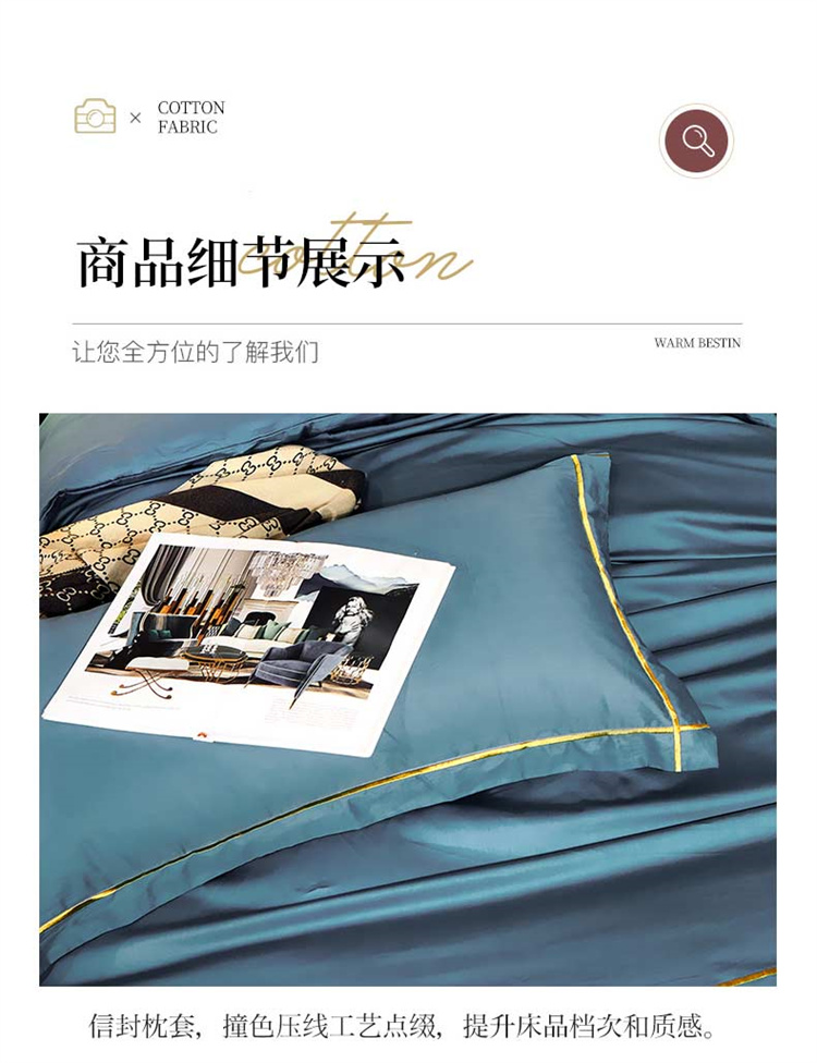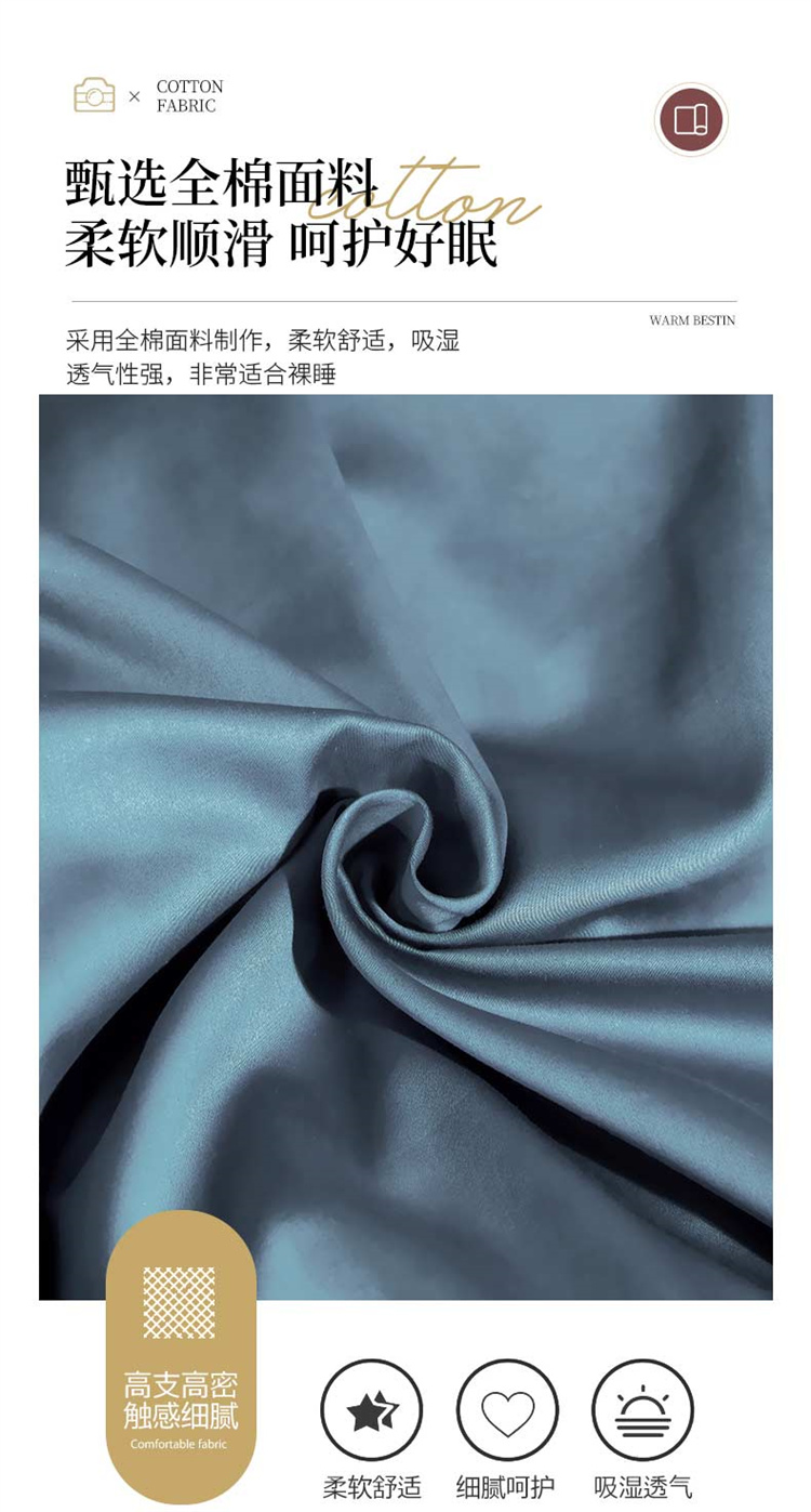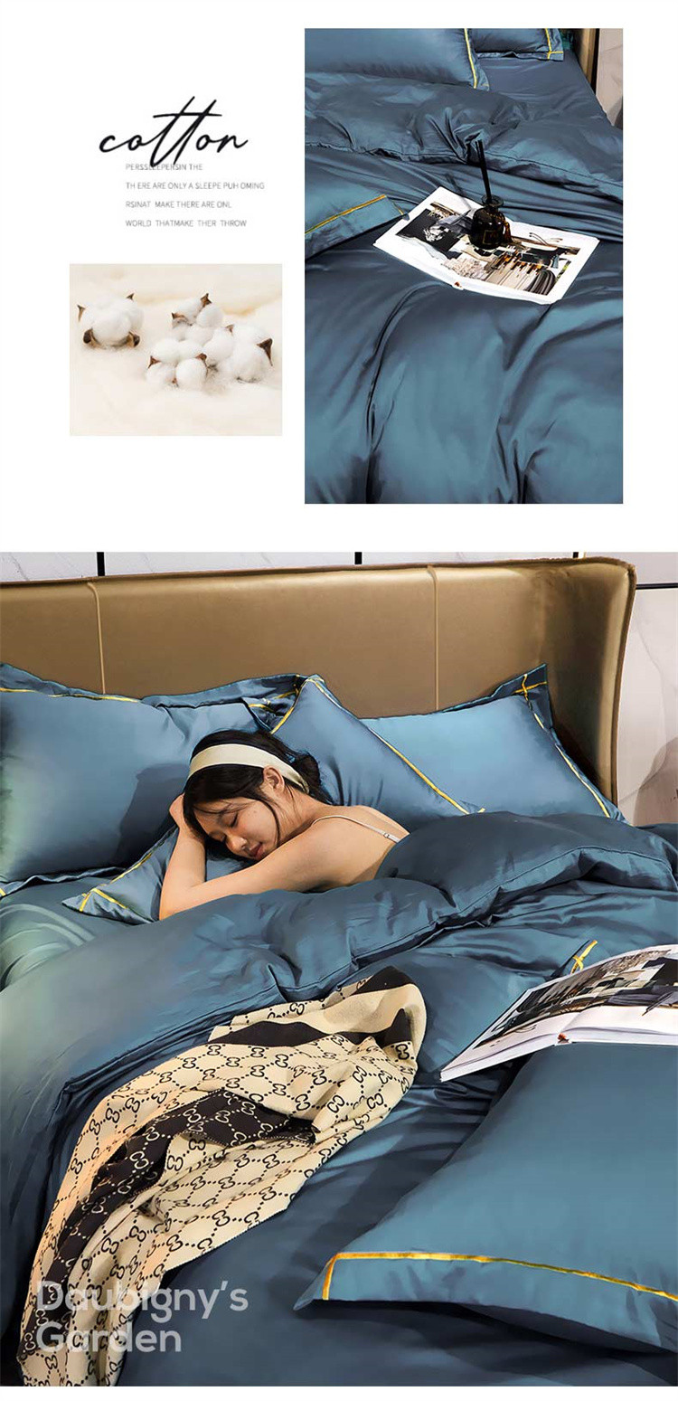商品名称:布乐意 2021新款酒店款40S全棉轻奢风四件套 宾利蓝