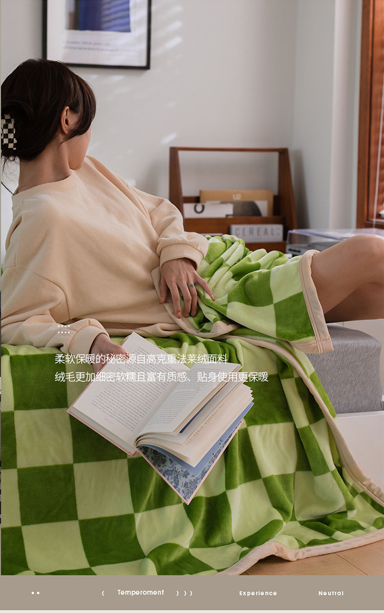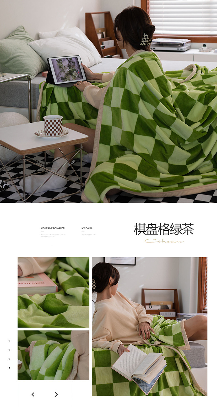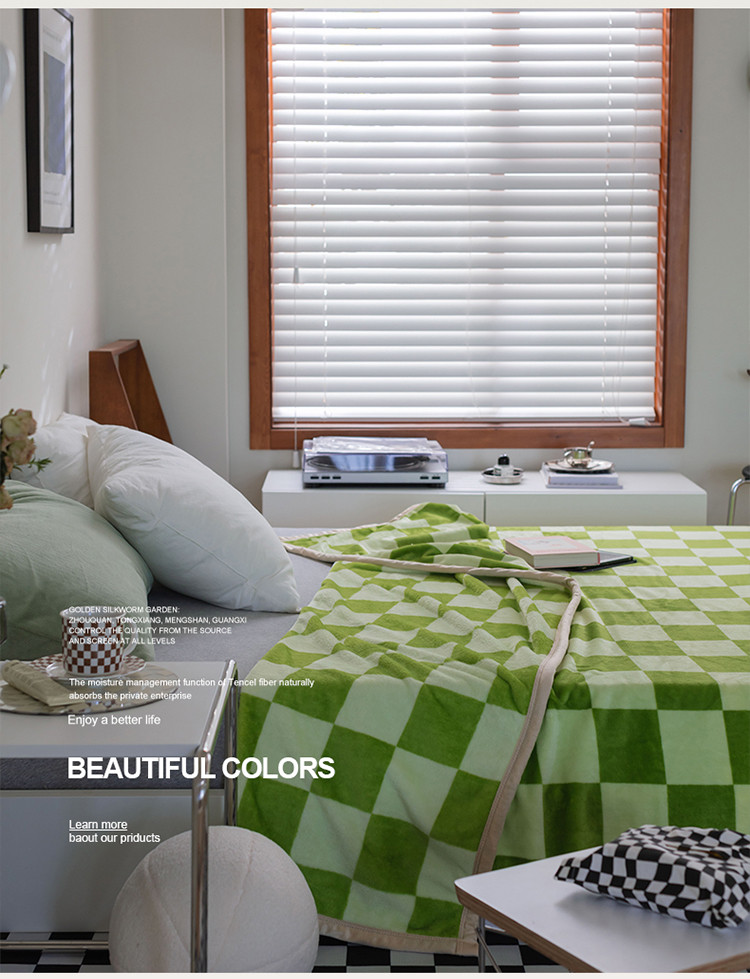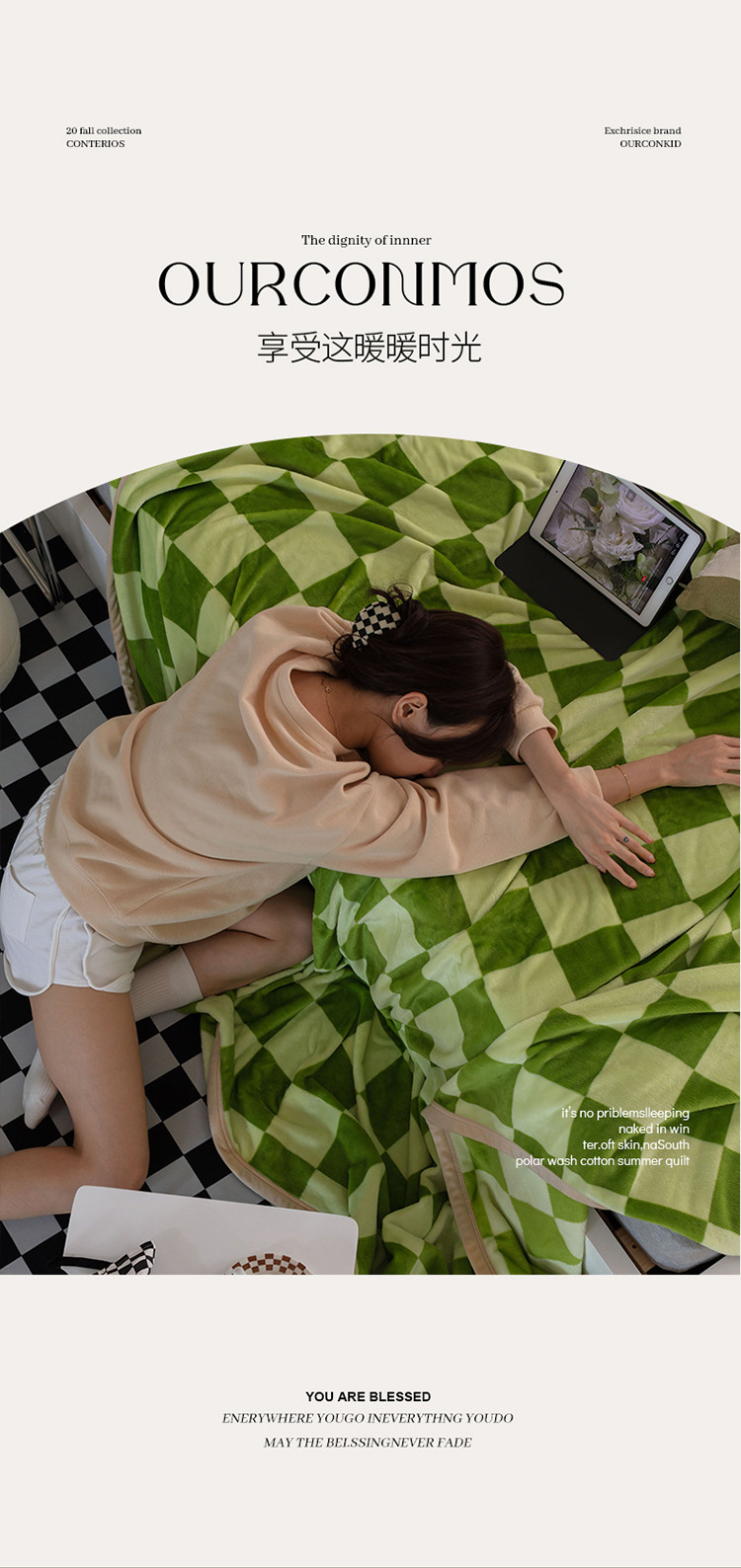 寐眠2021新款法莱绒棋牌格毛毯 棋盘格绿茶