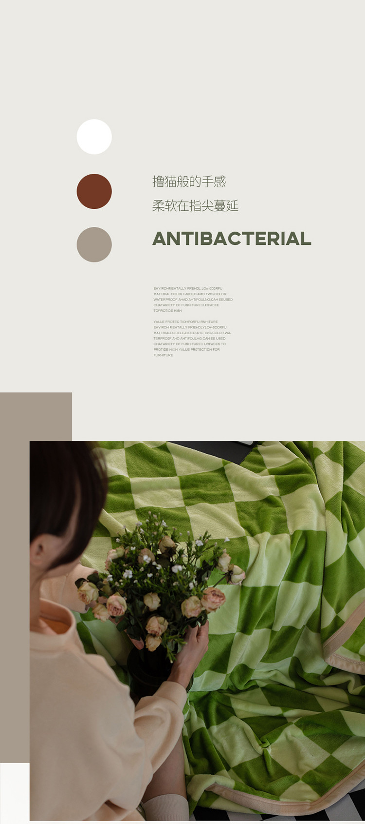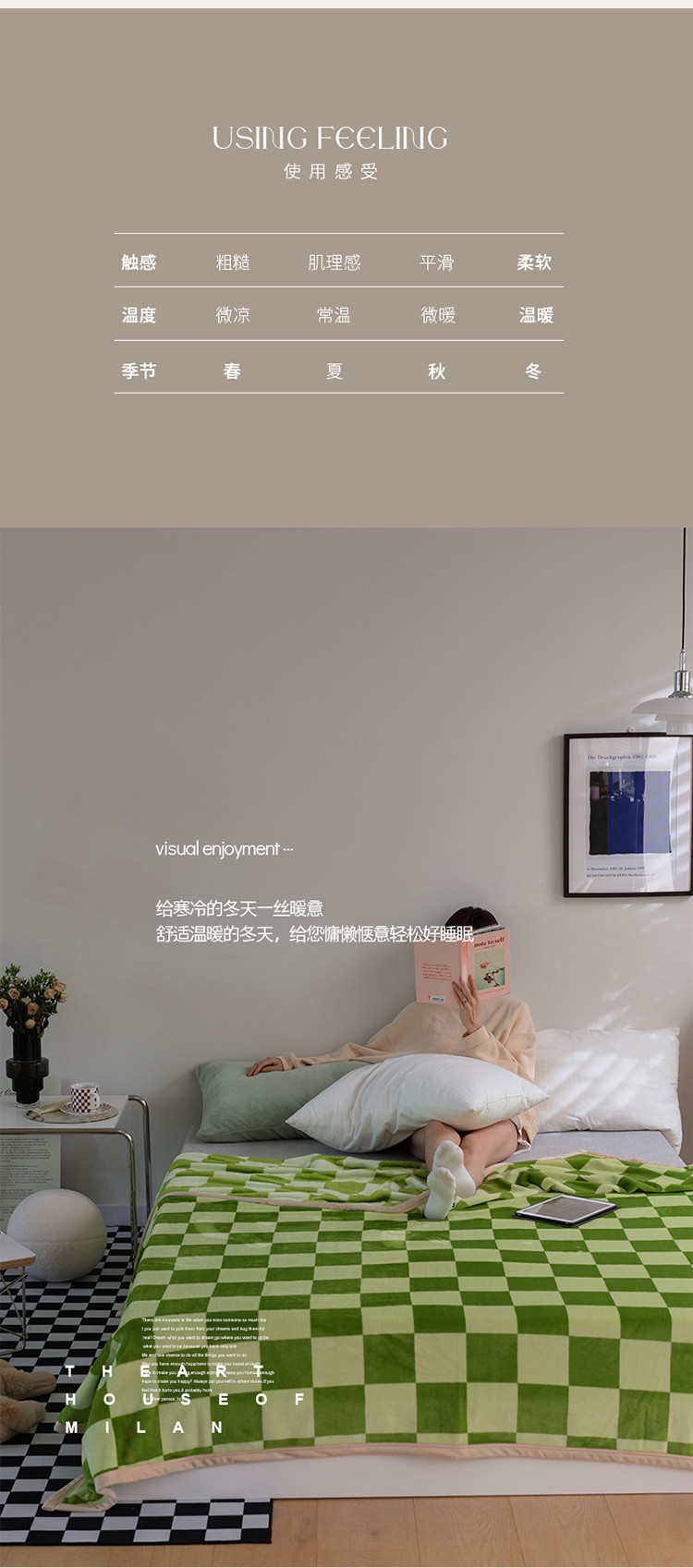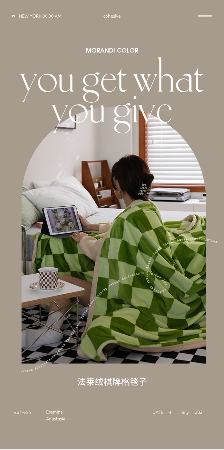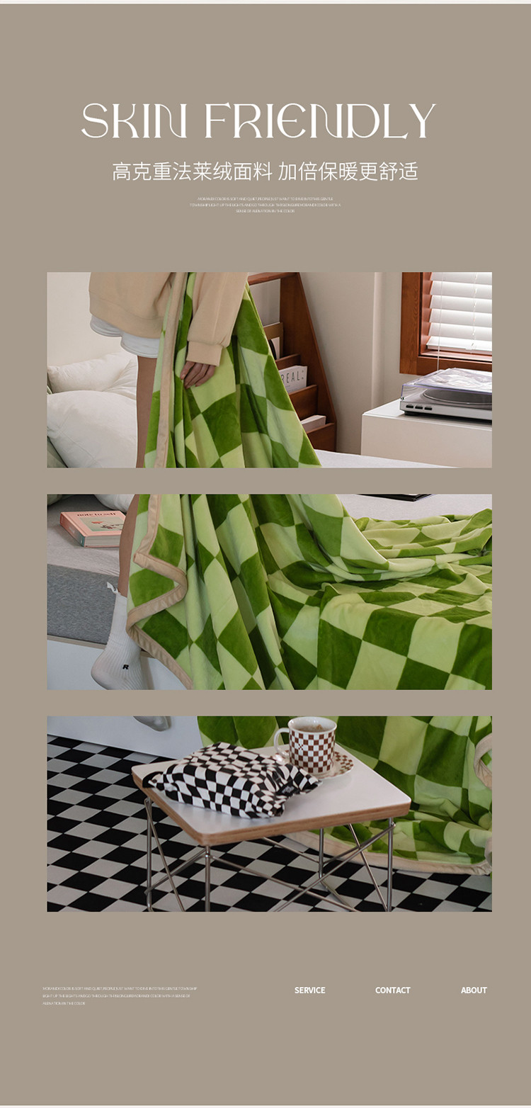 寐眠2021新款法莱绒棋牌格毛毯 棋盘格绿茶