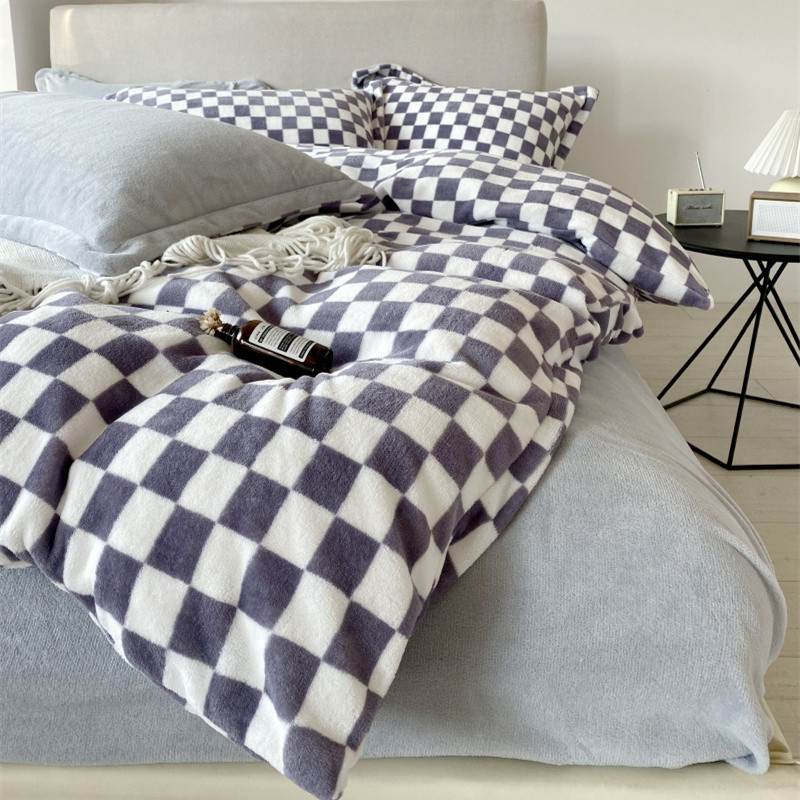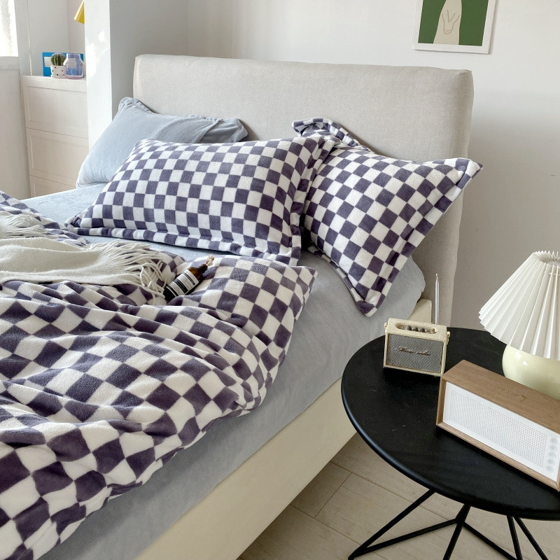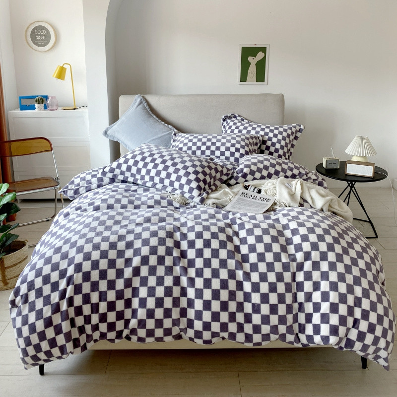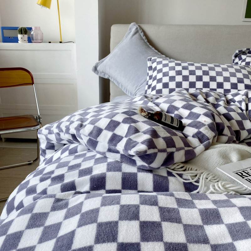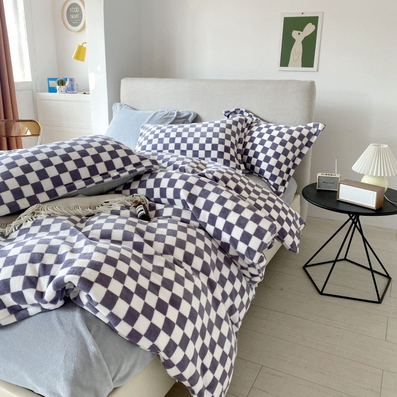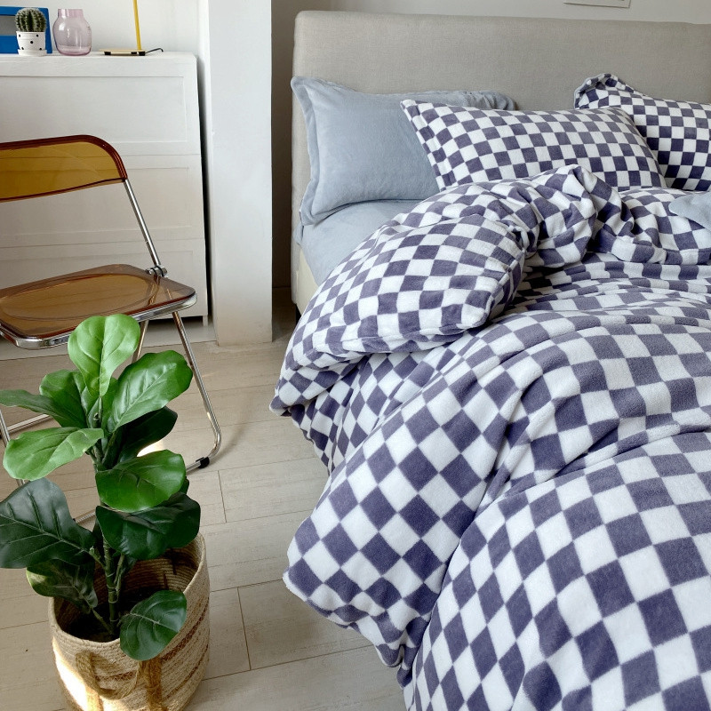 棉生活 2021新款220g牛奶绒ins风绝绝子棋盘格四件套 摩卡白格