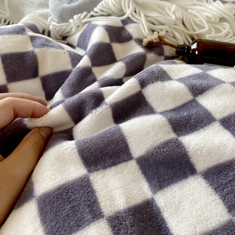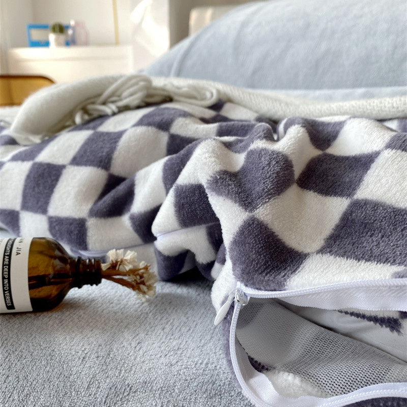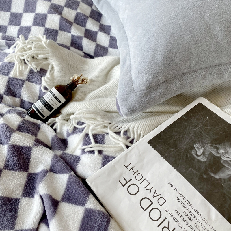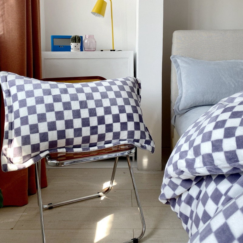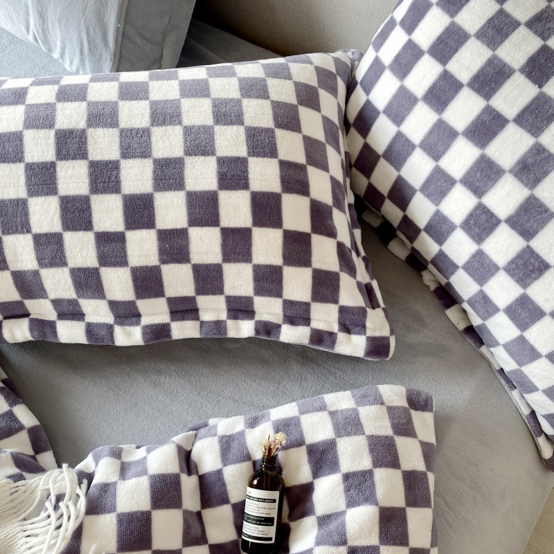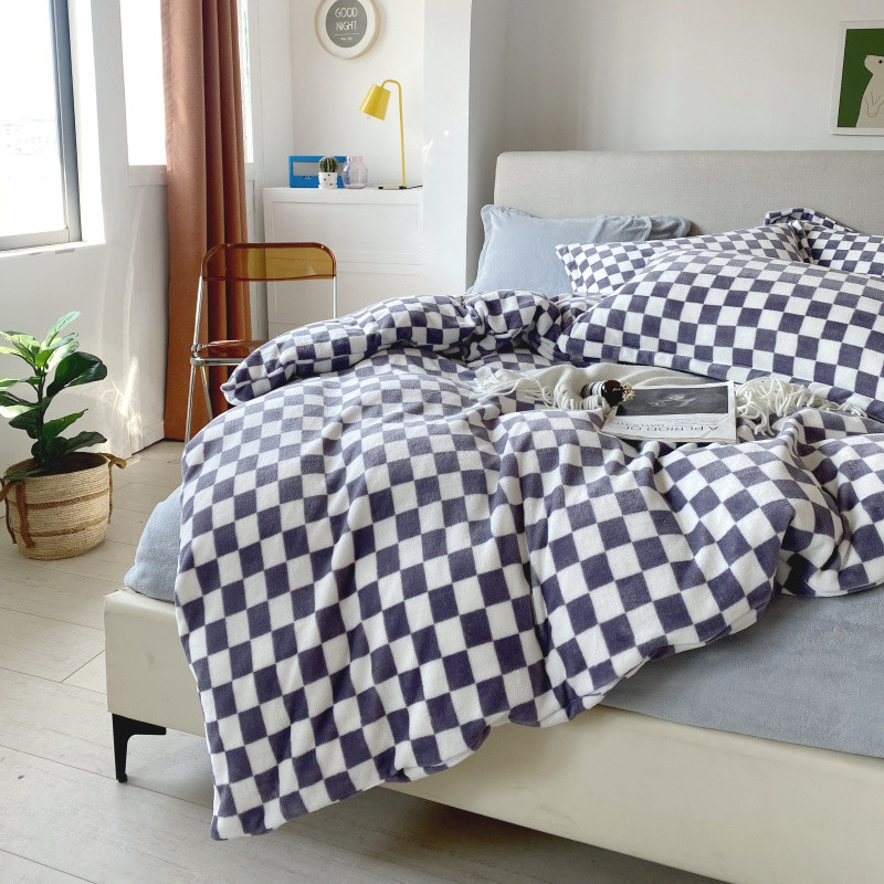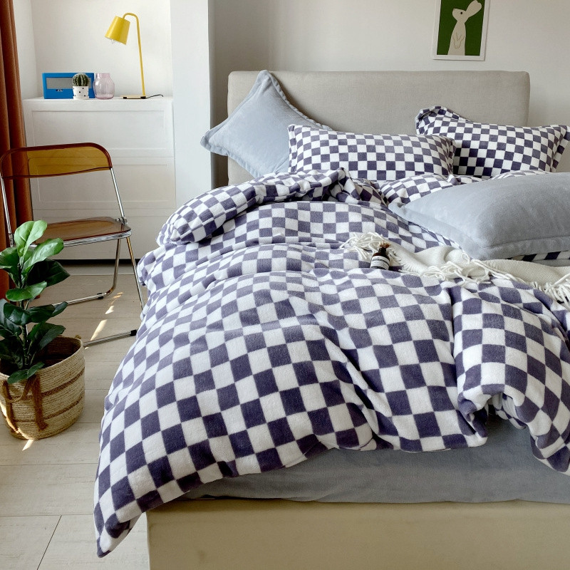 棉生活 2021新款220g牛奶绒ins风绝绝子棋盘格四件套 摩卡白格