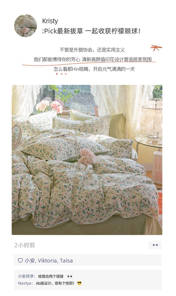 商品名称:千朵 2021新款13372全棉印花四件套 树叶