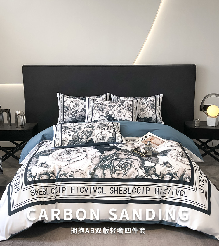 (总)花沐家居 2023新款活性数码印花牛奶绒四件套-场景1,白色字母熊,黑白金范,黑白熊,黑色花朵,渐变熊,条纹,小白熊,小粉熊,小古黑花,小黑熊,小香风字母,字母熊