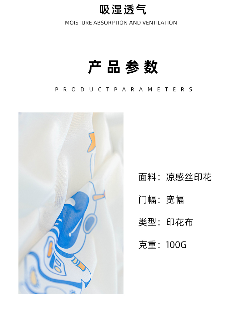 宏圣 2022春夏新品面料凉席面料A类凉感丝面料印花系列