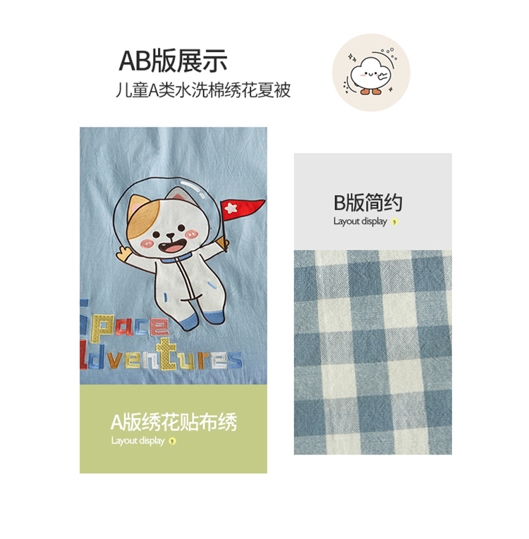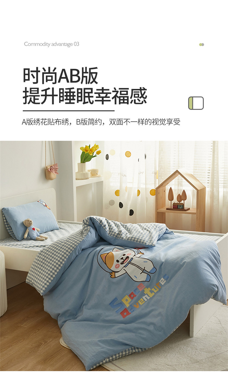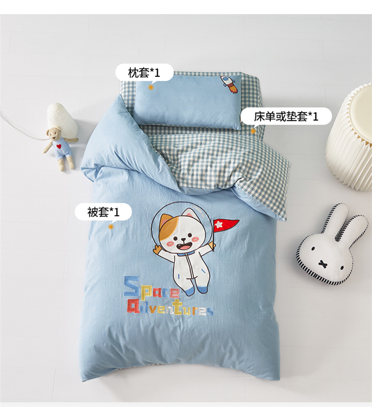 当前位置: 91家纺网 > 商品网购 > 床品套件 > 三件套 > 荷马之梦 童梦系列—儿童A类全棉色织水洗棉绣花三件套太空喵